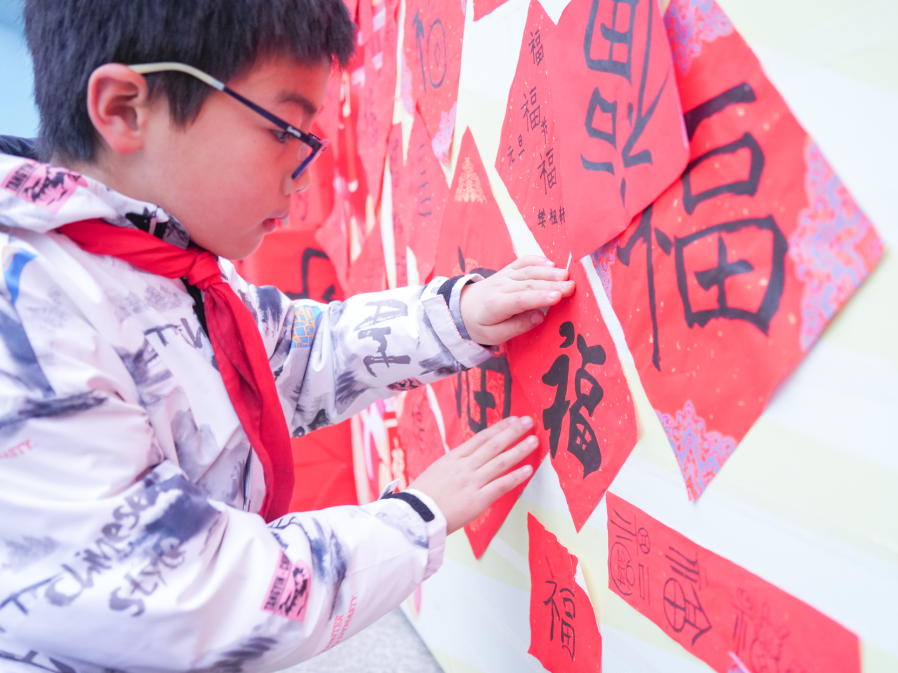 新年来到,百福纳祥,“龙”重登场!黄甲小学美术组开展了主题为“丹青溢彩庆新年”活动。通过现场写“福”、贴“福”、剪窗花、沁蓝坊“新春派送已到达”等暖心活动,既让孩子们感受新年的喜悦和传统文化的魅力,又丰富他们的校园生活。
