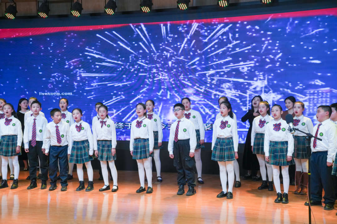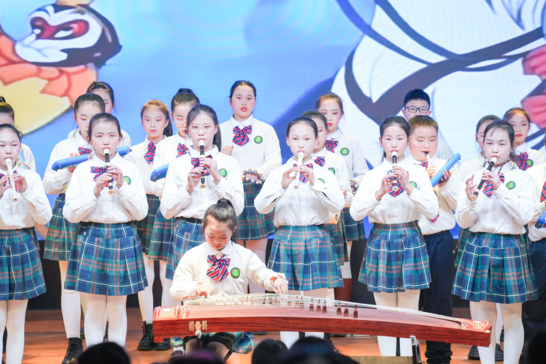 梦之声合唱团新星组的孩子们带来器乐合奏《云宫迅音》,管弦丝竹,余音绕梁。
