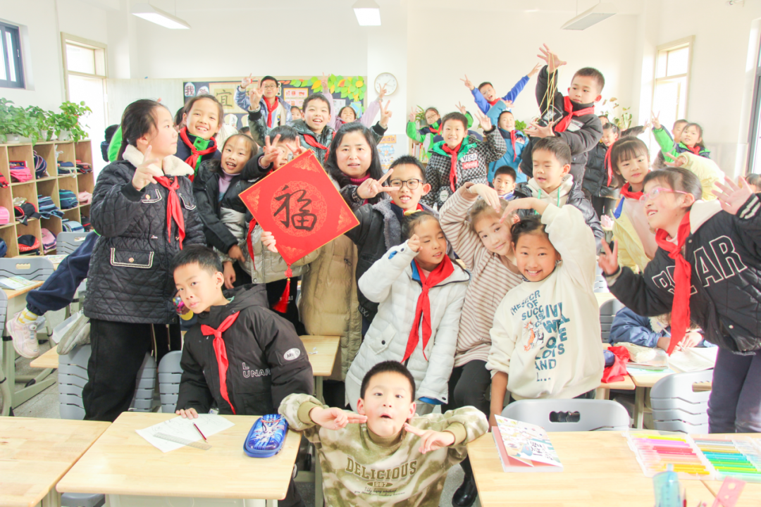 看,可爱的老师和孩子们手持“福”,兴致勃勃贴“福”咯!藏不住的笑容,是冬日动人的瞬间。