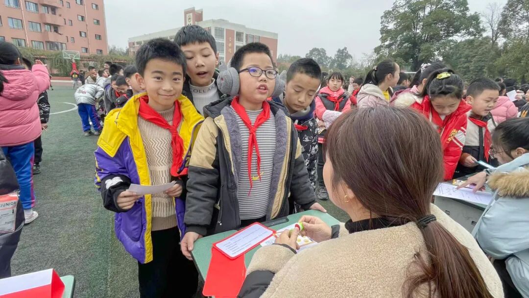 闯关开始啦!全校1-6年级的学生在老师的带领下,排着整齐的队伍来到语文、数学、体育、英语、音乐、科学等闯关区进行冲关活动。