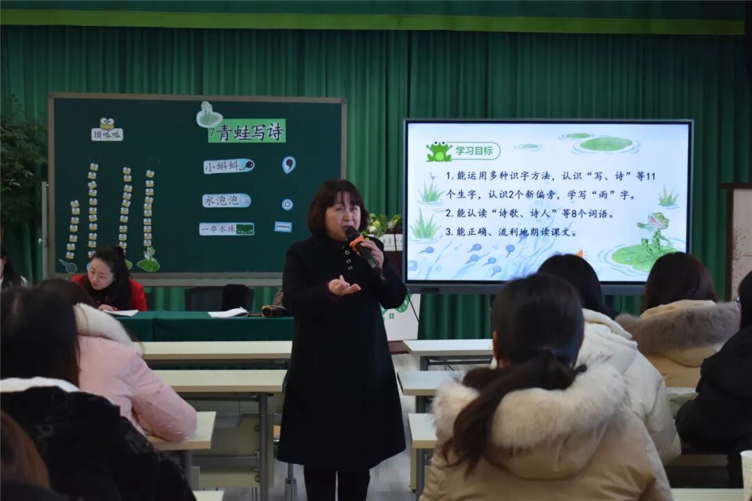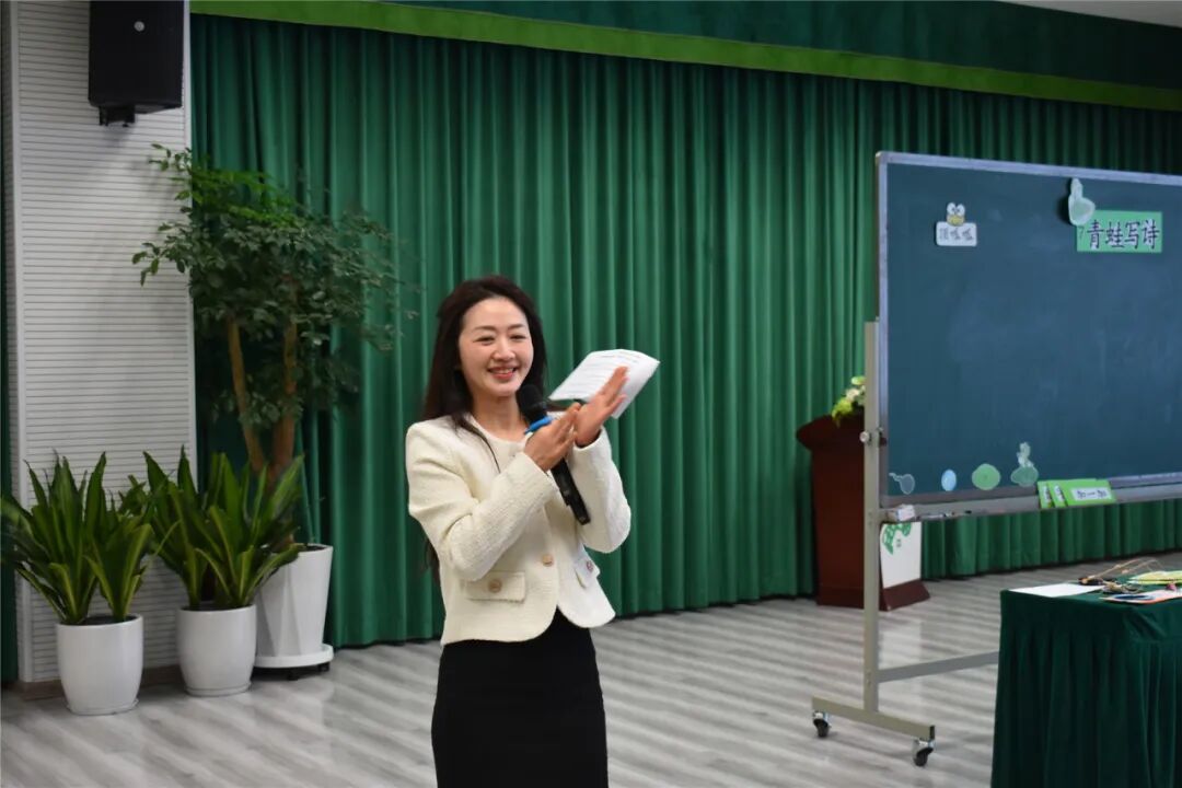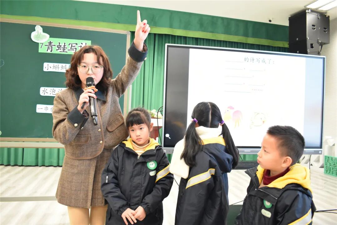 第二节课由双流区实验小学外国语学校王甜甜老师带来《青蛙写诗》精讲点拨课。王老师在这节课中关注学情,注重朗读;关注内容,注重理解;关注能力,注重迁移,基于以上三个关注和三个注重,不仅在教学过程中体现了对学情的关注, 同时也重点完成了本堂课的学习目标,让孩子可以自己在朗读和观察中去发现,在引导和实践中去运用。基于孩子们现阶段的学情特点,王老师整堂课的设计都富有儿童趣味,让课堂教学在真实的情境中发生。同时,把朗读的时间和思考的时间留给学生,用问题引导学生读文思考,不是单纯的老师输出,而是注重激发学生自主学习和自主思考的能力。