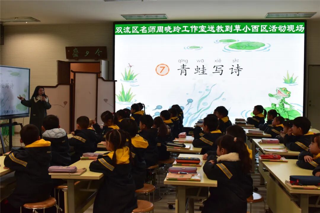 2024年1月5日,迎着新年的气象,双流区名师周晓玲工作室导师和学员一同来到成都市草堂小学(西区)开展送教活动。踏进校园,草小(西区)独特亮眼的校园文化,干净整洁的校园环境,文明礼貌的学生样态给大家留下了深刻印象。