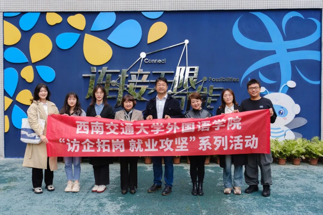 为进一步贯彻党中央、国务院关于高校毕业生就业工作的决策部署,落实教育部和四川省教育厅“访企拓岗促就业”专项行动通知要求,西南交大外国语学院党委副书记武俊带领辅导员陆衍伶及三位硕士研究生前往双实外进行走访参观并开展“促就业”交流活动。