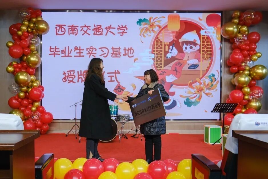 最终,院校双方在就业实习实践等方面达成了进一步合作共识:一、双方共建基地,助力人才培育共享,建立“西南交通大学毕业生就业实习基地”与“成都市双流区实验小学外国语学校培训基地”;二、依托基地开展实习、培训、科研等合作,提供专项实习,实现人才供需对接,并在第四届“幸福节”暨元旦庆祝活动进行了授牌仪式。