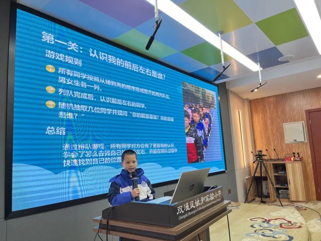 一年级数学组围绕“排队中的问题”,将数学与体育融合,设置了“认识我的前后左右是谁”“萝卜蹲团体游戏”“报数游戏,认识几和第几”等三个任务,让孩子们在游戏里感知排队中隐藏的数学知识。