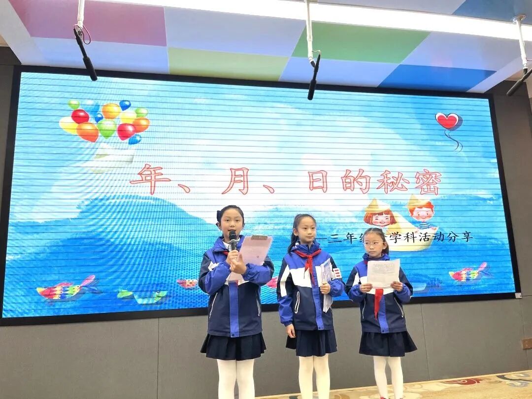 三年级数学组以“年、月、日的秘密”为题,将数学与科学、美术、道德与法治、信息技术融合,从农历与节气之间的关系、制作年历、我一天的时间规划、我眼中的年月日等方面进行了分享。孩子们在动手操作的过程中了解自然现象,感悟传统文化,增强民族自豪感,形成积极的情感体验。