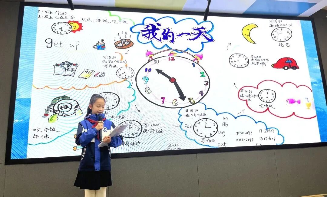 最后,夏校长对活动进行总结性评价。她高度赞扬了本次“跨学科”主题活动的形式,跳出了教师主讲的“舒适圈”,让学生成为活动的“代言人”,利用所学的知识站在了活动的正中央。