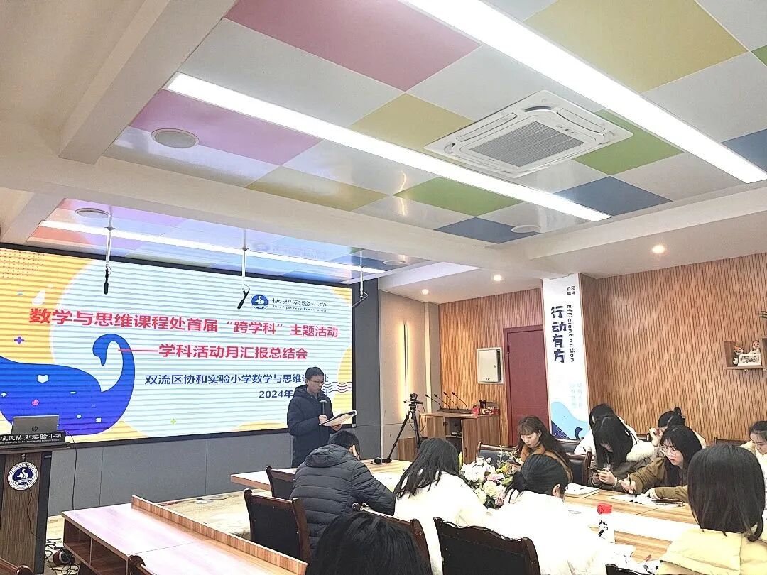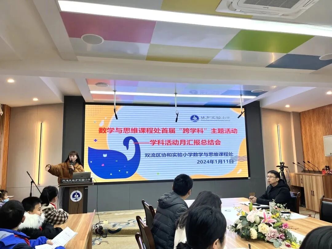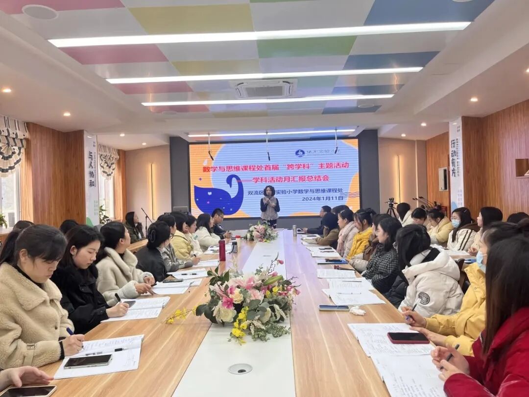 2024年1月11日,我校数学与思维课程处举行了首届“跨学科”主题的汇报总结会。学校党支部书记、校长夏雪梅,副校长黄军以及全体数学老师出席了此次活动,本次活动由教务处主任樊小娟主持。