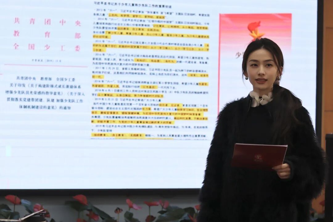 在本次总结会中,杨心怡老师分享了参与成都市辅导员技能大赛的备赛过程。从“少先队活动课说课”“主题宣讲展示”等四项内容,详细讲解了每个项目的具体要求,为工作室成员们答疑解惑。