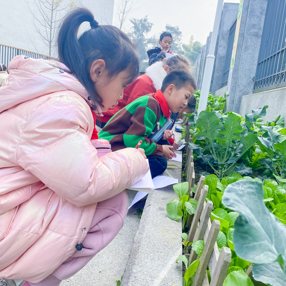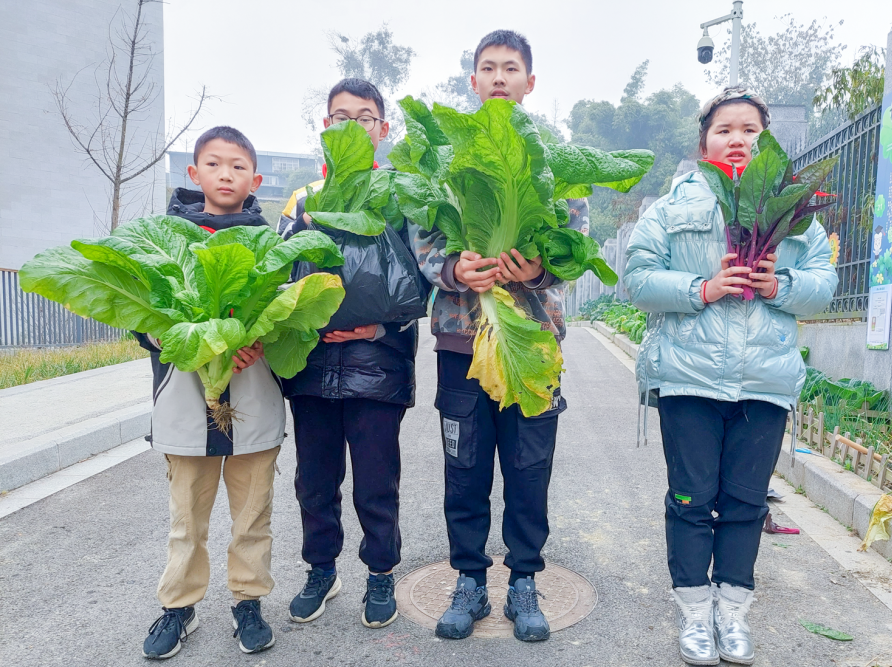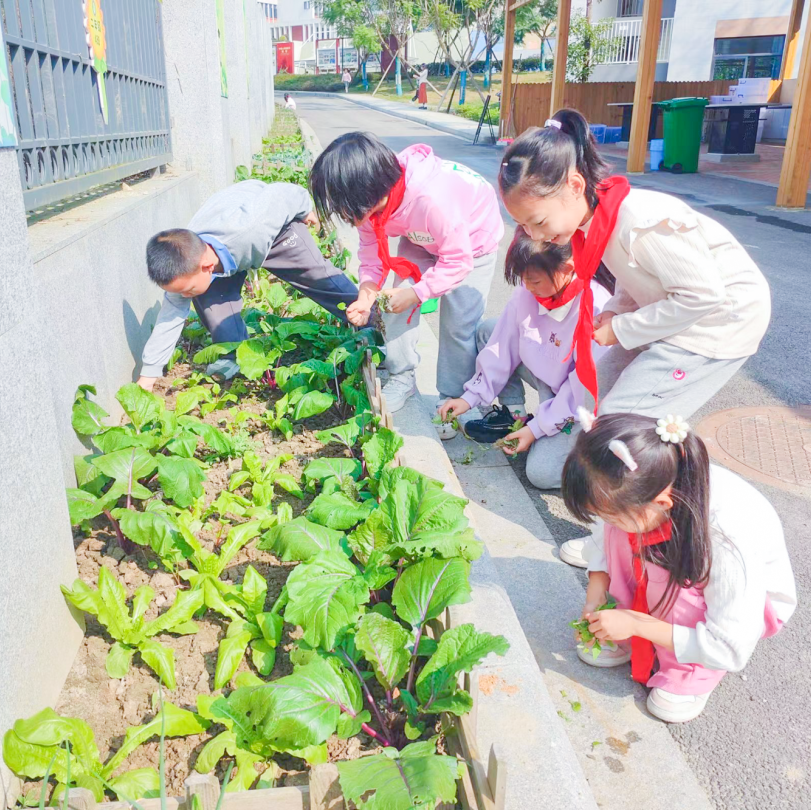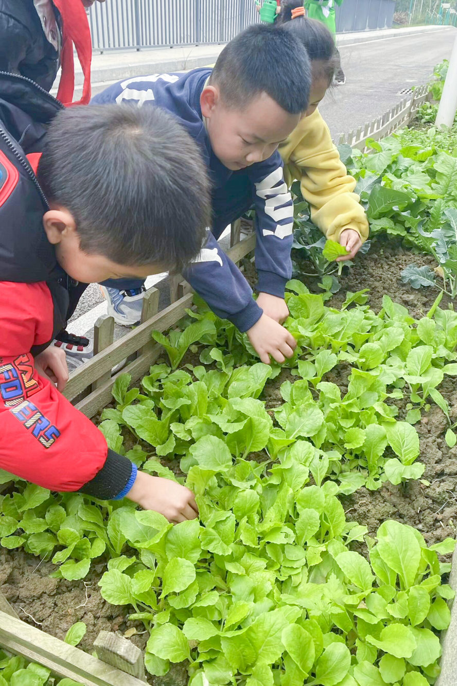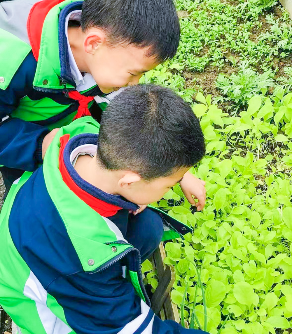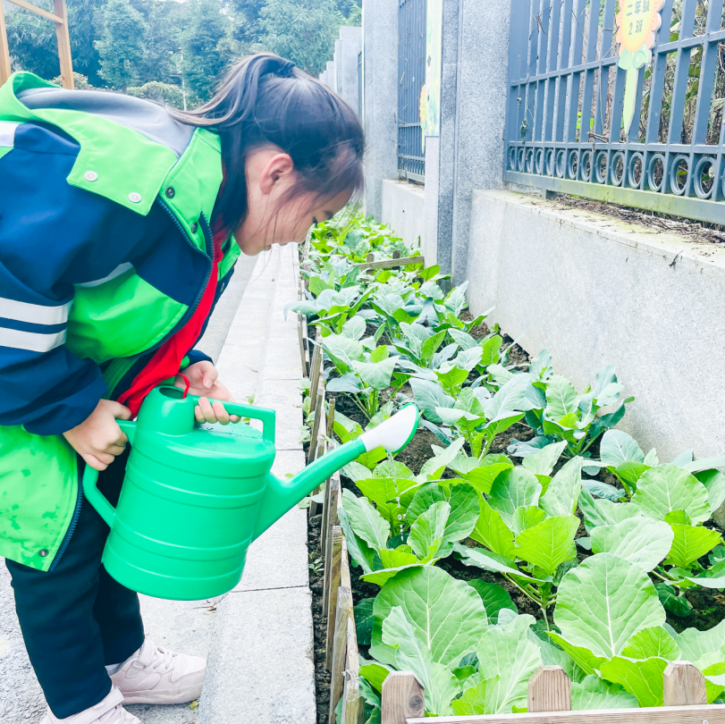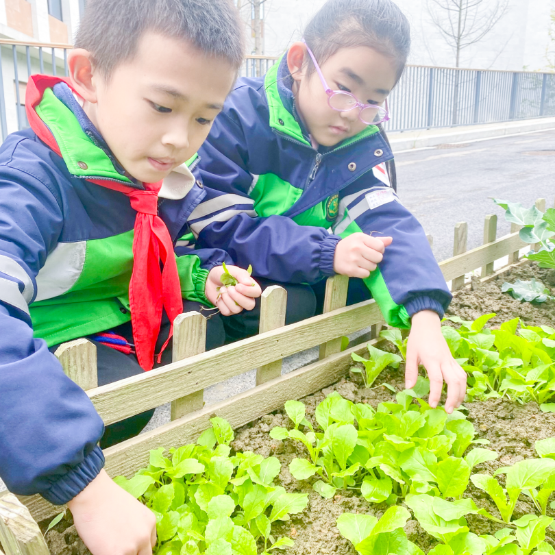 后来的两个月里,同学们轮流经常去种植园浇水、除草……一起去观察、照料蔬菜。时间流转,蔬菜们不负众望,茁壮成长,一片郁郁葱葱的景象映入眼帘,小小的种植园里充满了生机与活力。