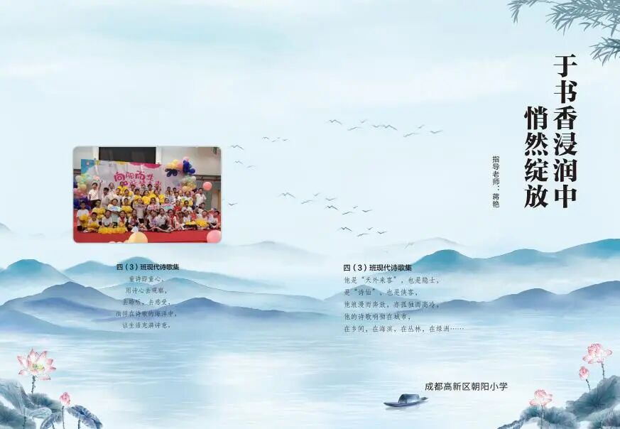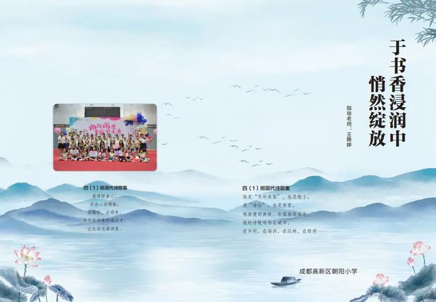 第三阶段设计《诗选》封面及装帧 ,制作《诗选》,课上学习微课《书籍装帧》后,分组讨论并完成诗选的制作,最后召开新书发布会。