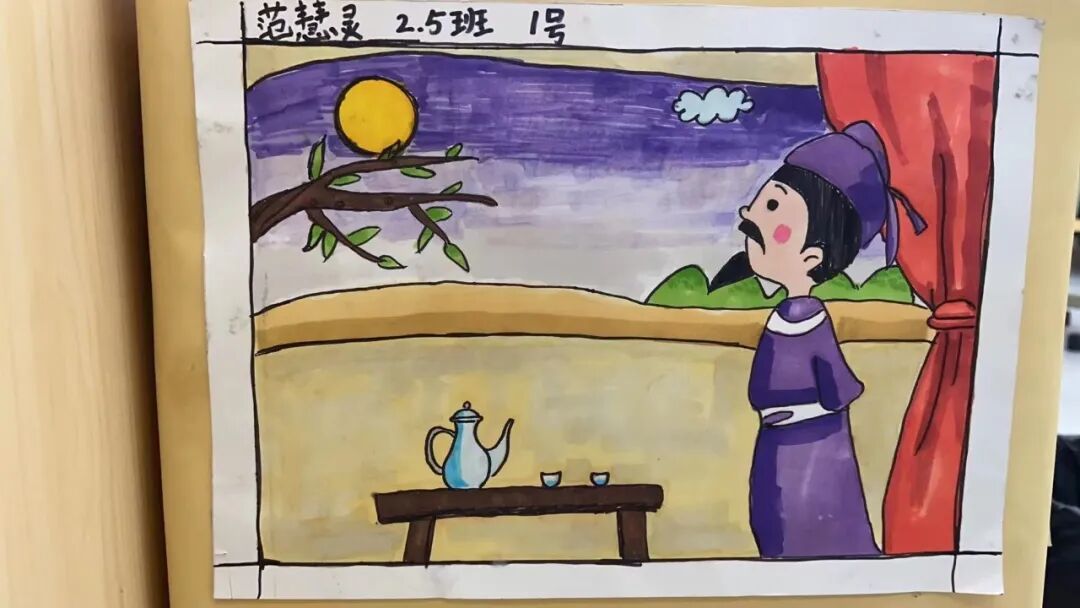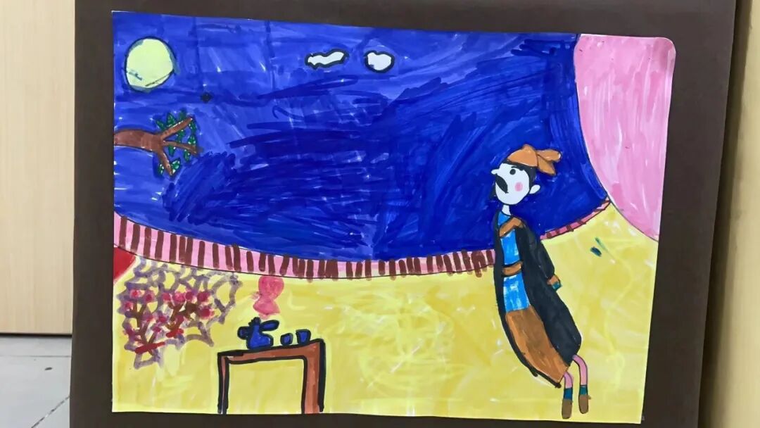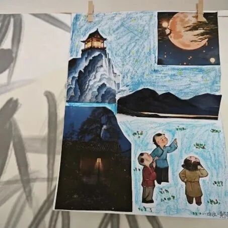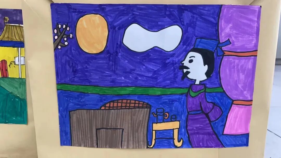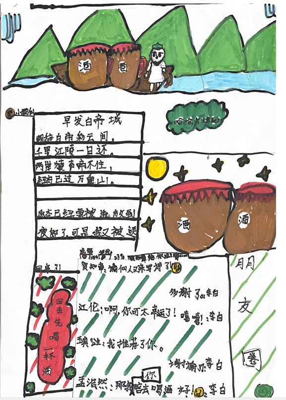 美术课上,孩子们把对李白诗歌的美好想象落在纸上,用明艳的色彩与奇妙的线条勾勒出对李白的赞叹。