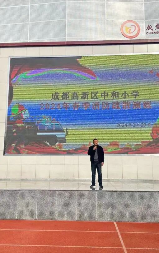 为了进一步加强校园安全工作,为了丰富师生的消防安全知识,增强师生的消防安全意识,提高师生的应急逃生能力,从而营造出安全、稳定、和谐的校园环境,成都高新区中和小学于2024年2月29日上午开展了消防安全疏散演练。
