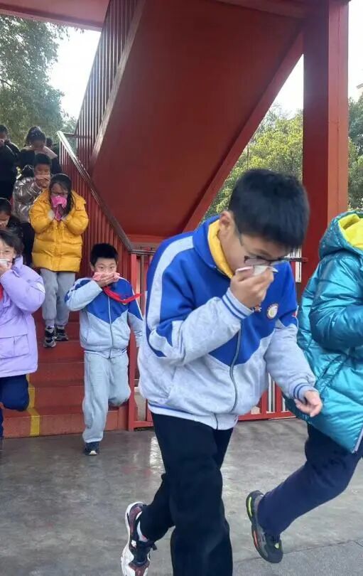 大课间时分,彭校长就此次消防安全疏散演练的要求再做强调。“2024成都高新区中和小学消防疏散演练正式开始。”随着彭校长指令的发出,全校学生在班主任引导下迅速撤出教室,从安全通道口撤离。同学们一个个表情严肃,用手捂着口鼻,腰背半弯着下楼,有序地从通道口撤离“火灾”现场。楼内、撤离点的老师们按照消防演练方案疏散学生,确保楼内学生的安全,以免慌乱中出现拥挤踩踏事件,学生全部撤离后老师们再陆续撤离教学楼。离开教学楼后,学生们统一来到运动场,在预先所安排的位置集合完毕。