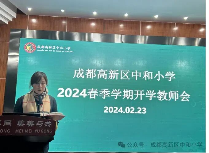 春归启新程,奋楫正当时。为了确保新学期各项工作安全、顺利、高效地开展,中和小学教育集团于2024年2月23日上午召开2024年春季学期开学工作会议,会议由李林蔓老师主持,中和小学教育集团全体教师参会。