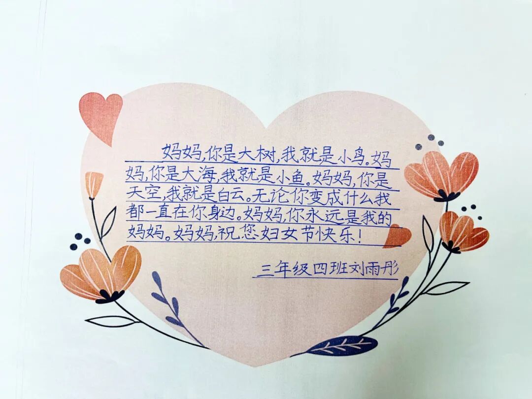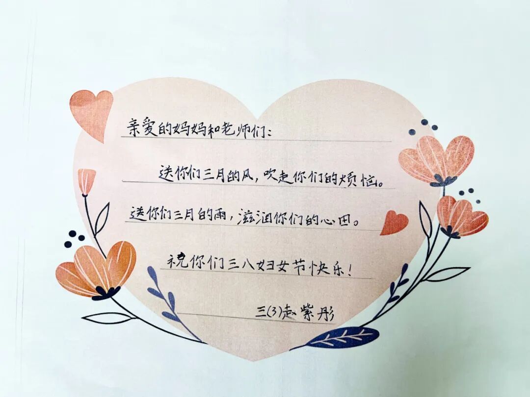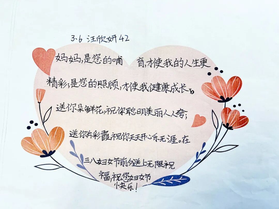 春光美妙花枝俏,妇女节日来报到。送来艳阳空中照,送来花香鸟语绕。春风吹拂面含笑,心情舒畅烦恼消。手机一响祝福到,深情厚谊惹人傲。祝福的春风吹到了双实外,瞧,唤能中心的能能娃们正在大声“告白”。