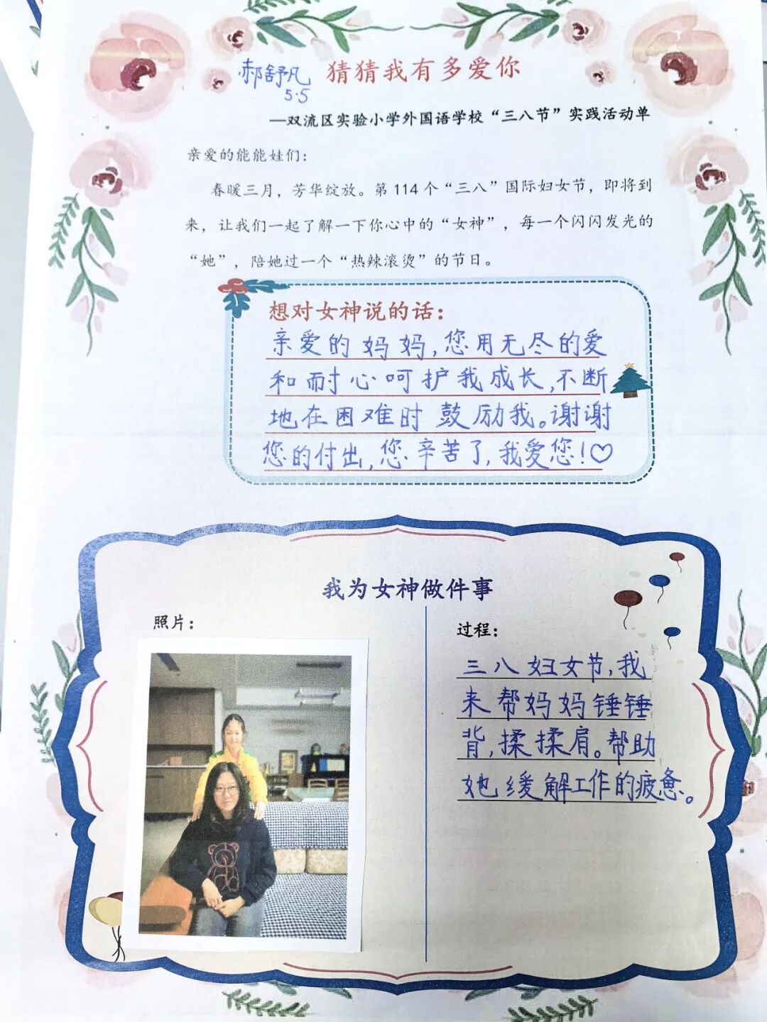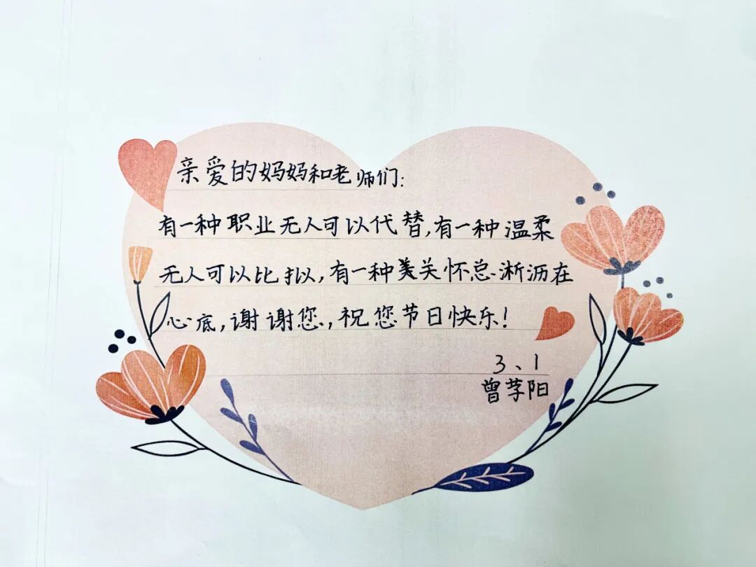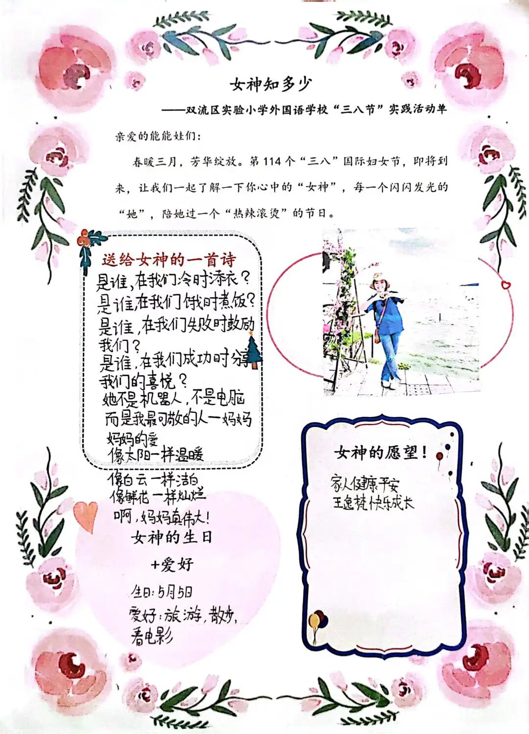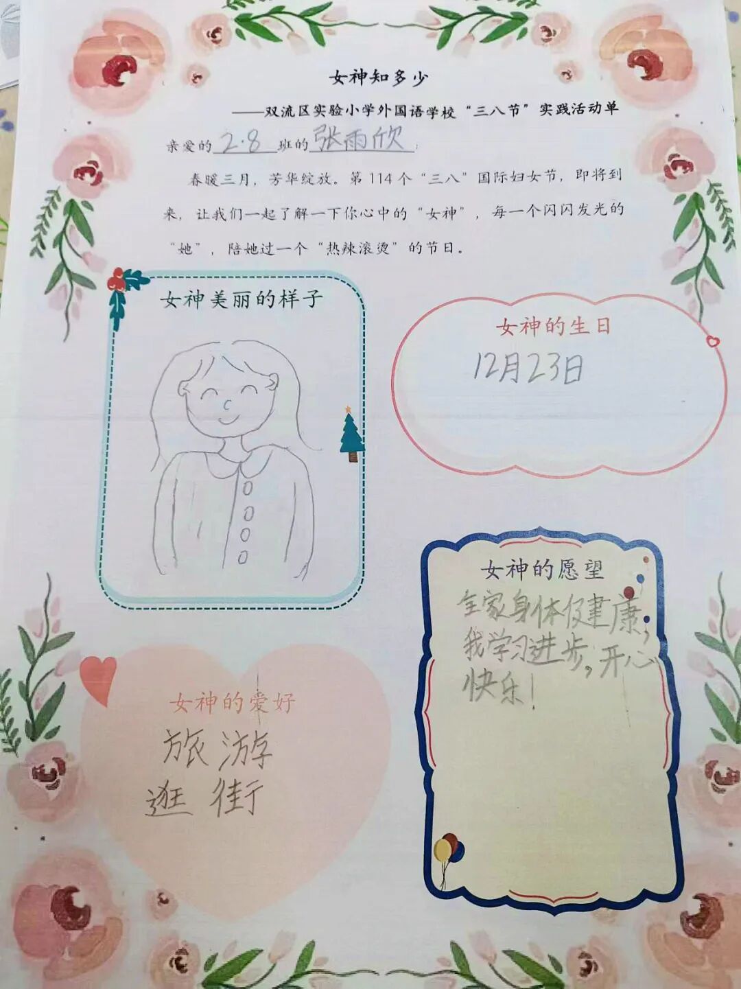 春暖花开,柳亸莺娇, 在这莺飞草长的三月, 我们迎来了温馨的女神节!人间春日,恰逢最“美”她时节;春风曼舞,恰似最“美”她容颜。“花儿朵朵”笑开颜,双实外的可爱宝贝们纷纷为我们的“女神”献上热辣祝福!