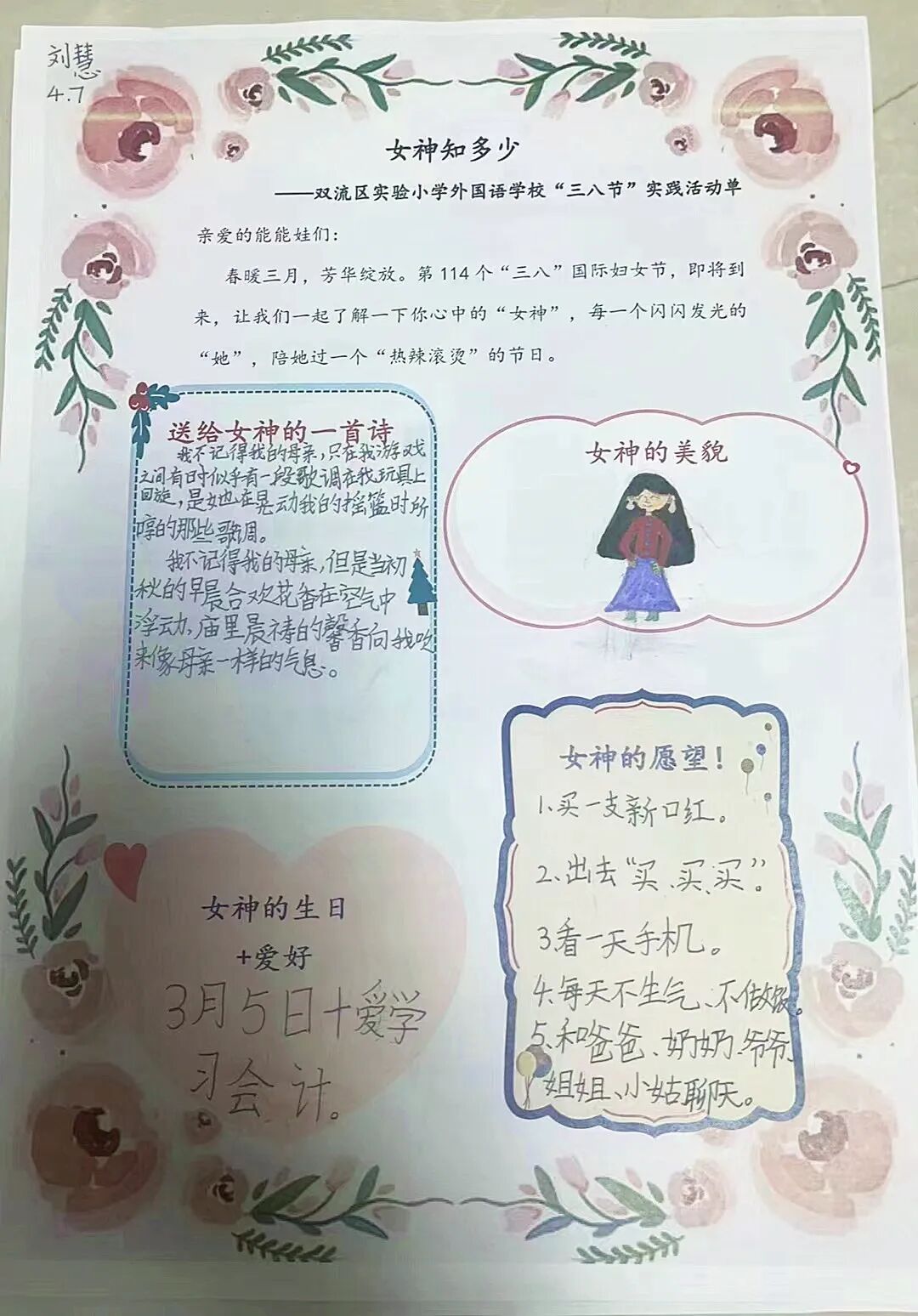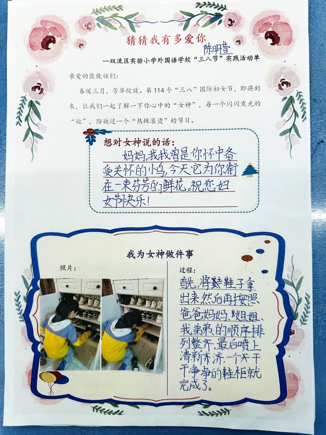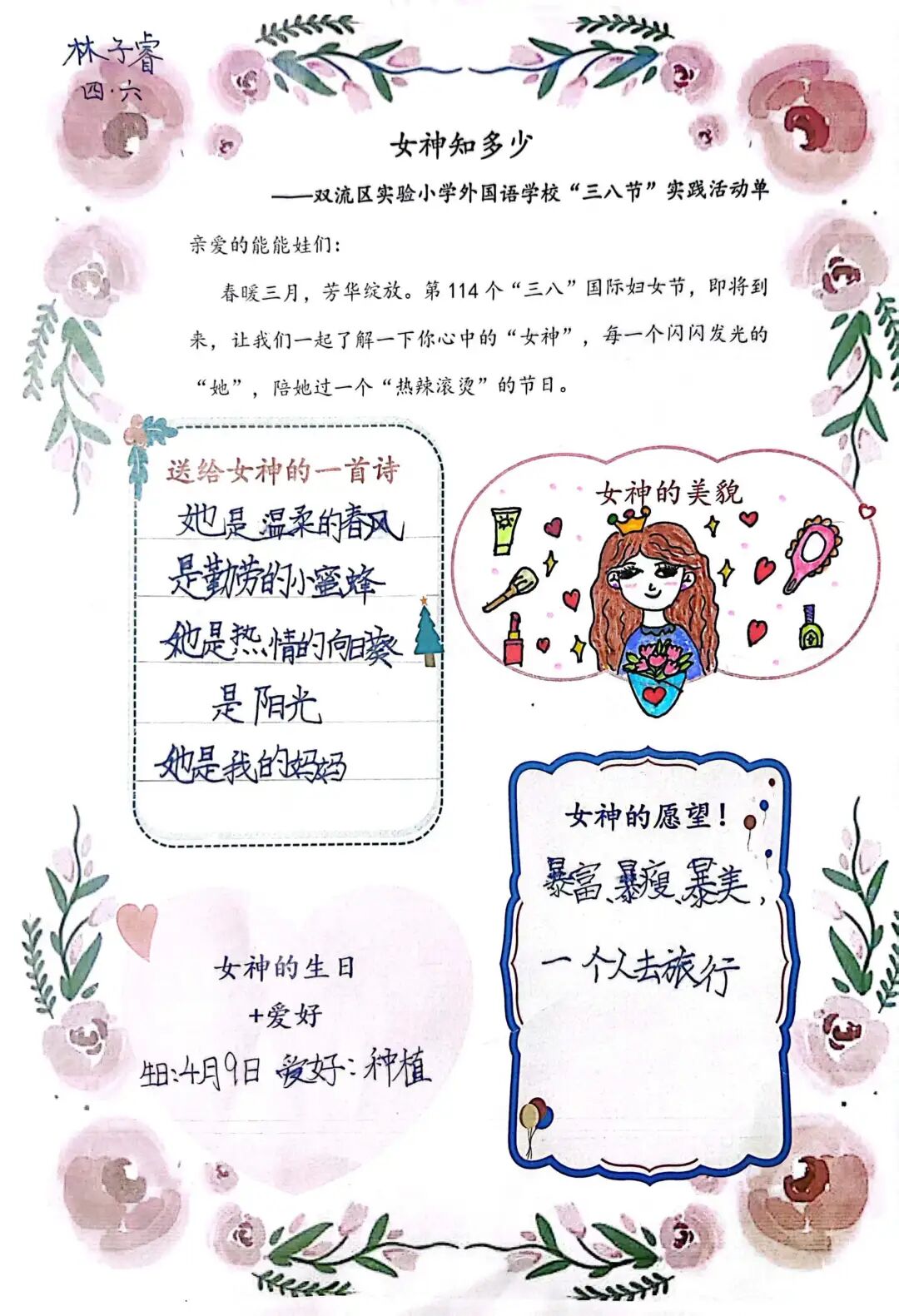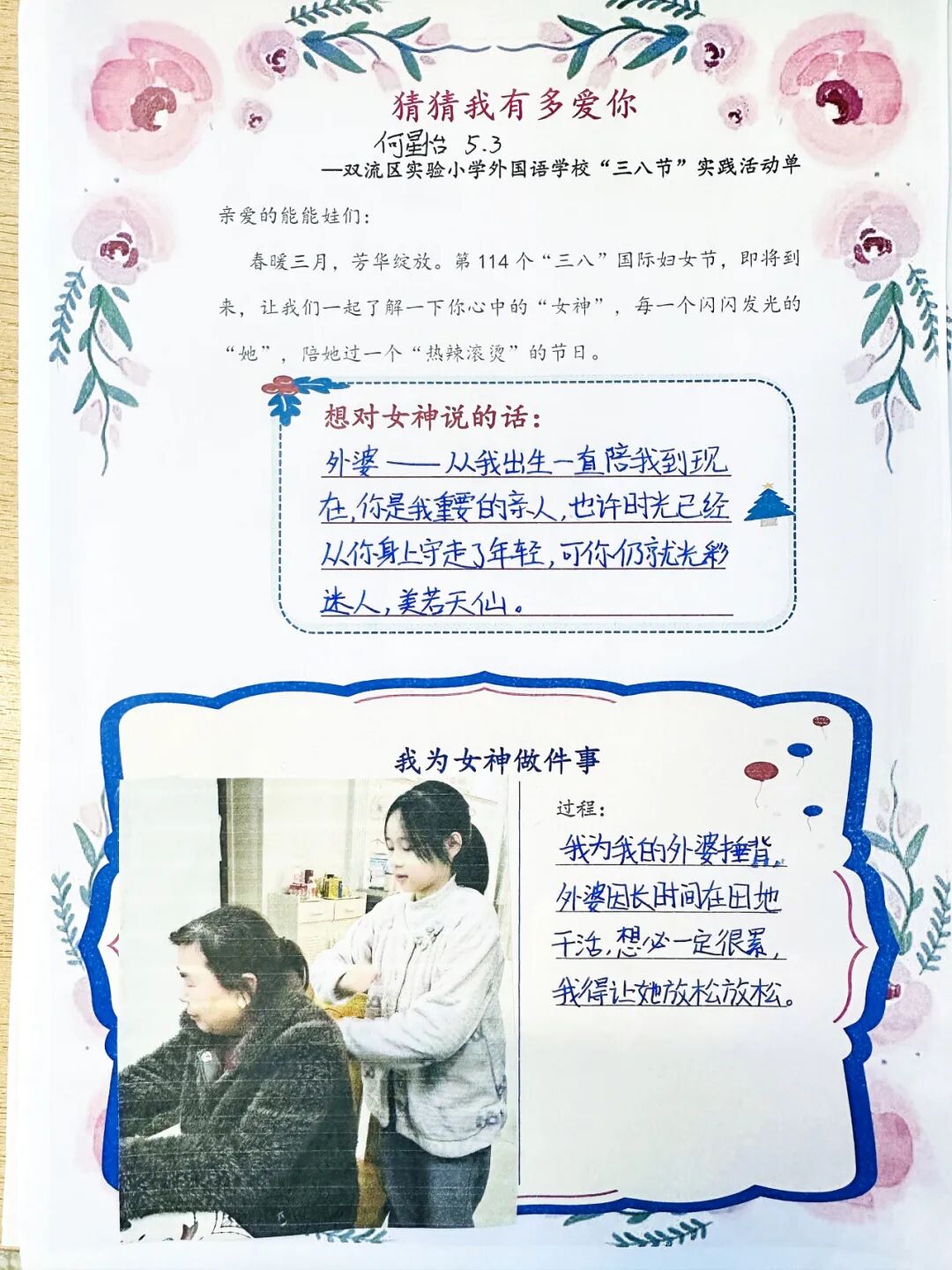 春暖花开,柳亸莺娇, 在这莺飞草长的三月, 我们迎来了温馨的女神节!人间春日,恰逢最“美”她时节;春风曼舞,恰似最“美”她容颜。“花儿朵朵”笑开颜,双实外的可爱宝贝们纷纷为我们的“女神”献上热辣祝福!