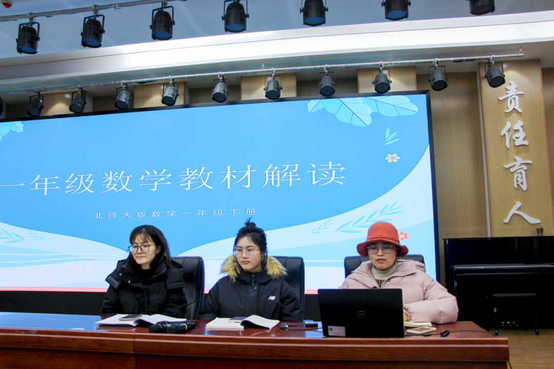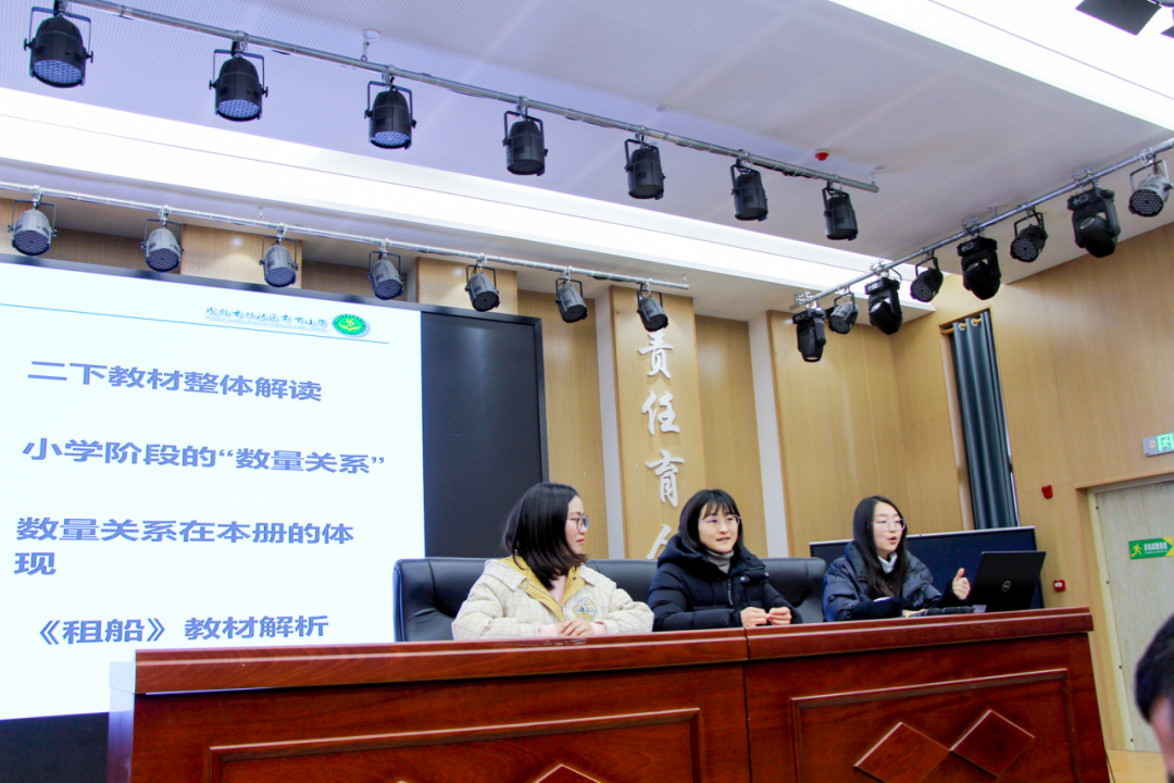 首先由二年级数学组对本册教材以及小学阶段中涉及到“数量关系”的内容进行了整体解读和具体分析。