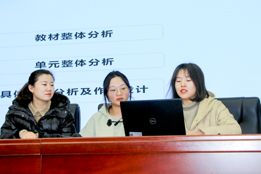 音乐组的教材解读分析全面、表达流畅清晰,解读过程中还充分体现了三位老师的学科专业素养。