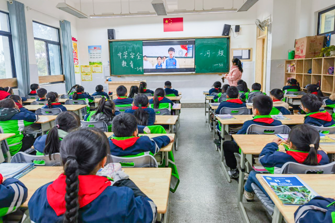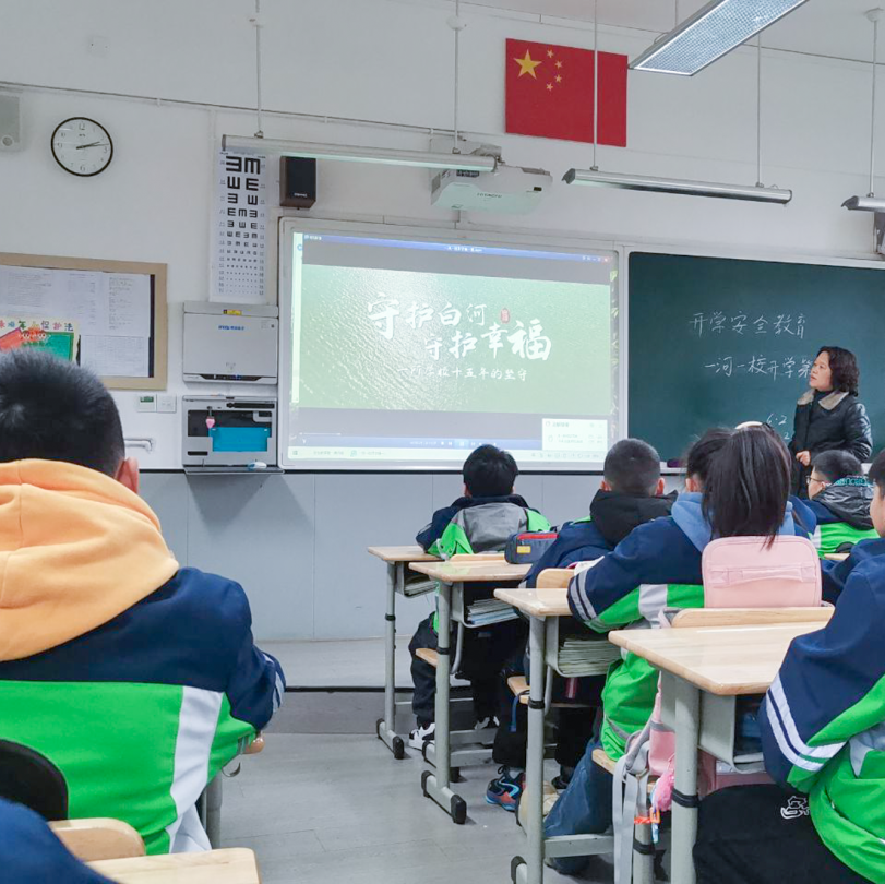 全校师生在开学安全第一课中观看爱河护河宣传视频——《守护白河》。通过生动的画面和深刻的讲解,同学们更加直观地了解了爱河护河活动的意义和实施方式,激发了大家积极参与环保行动的热情。