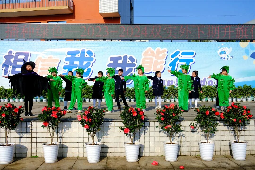 阳春三月,万物复苏,一片欣欣向荣,好一幅“袅袅城边柳,青青陌上桑”的画卷。今年的3月12日是我国的第46个植树节,双流区实验小学外国语学校二年级六班(玉兰花中队)的孩子们带来了主题为“拥抱春天,播种绿色”的国旗下展示活动。