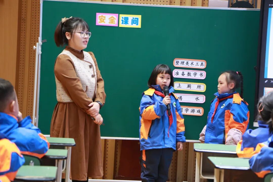 首先,由彭镇小学徐文老师给大家带来了主题微班课《安全十分 快乐十分》。课堂伊始,“鲤鱼跳龙门”游戏一下子吸引了孩子们的兴趣,更抓住了所有老师的眼球。同时,徐老师以“时光老人”为线索,通过感悟“小白”同学的事例,孩子们在真实情境中知道了“下课三法宝”:做事分先后、活动分场地和游戏要安全。