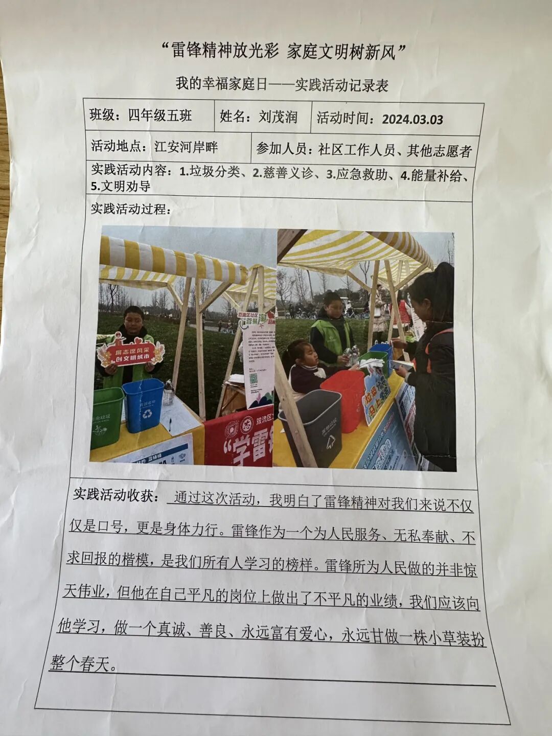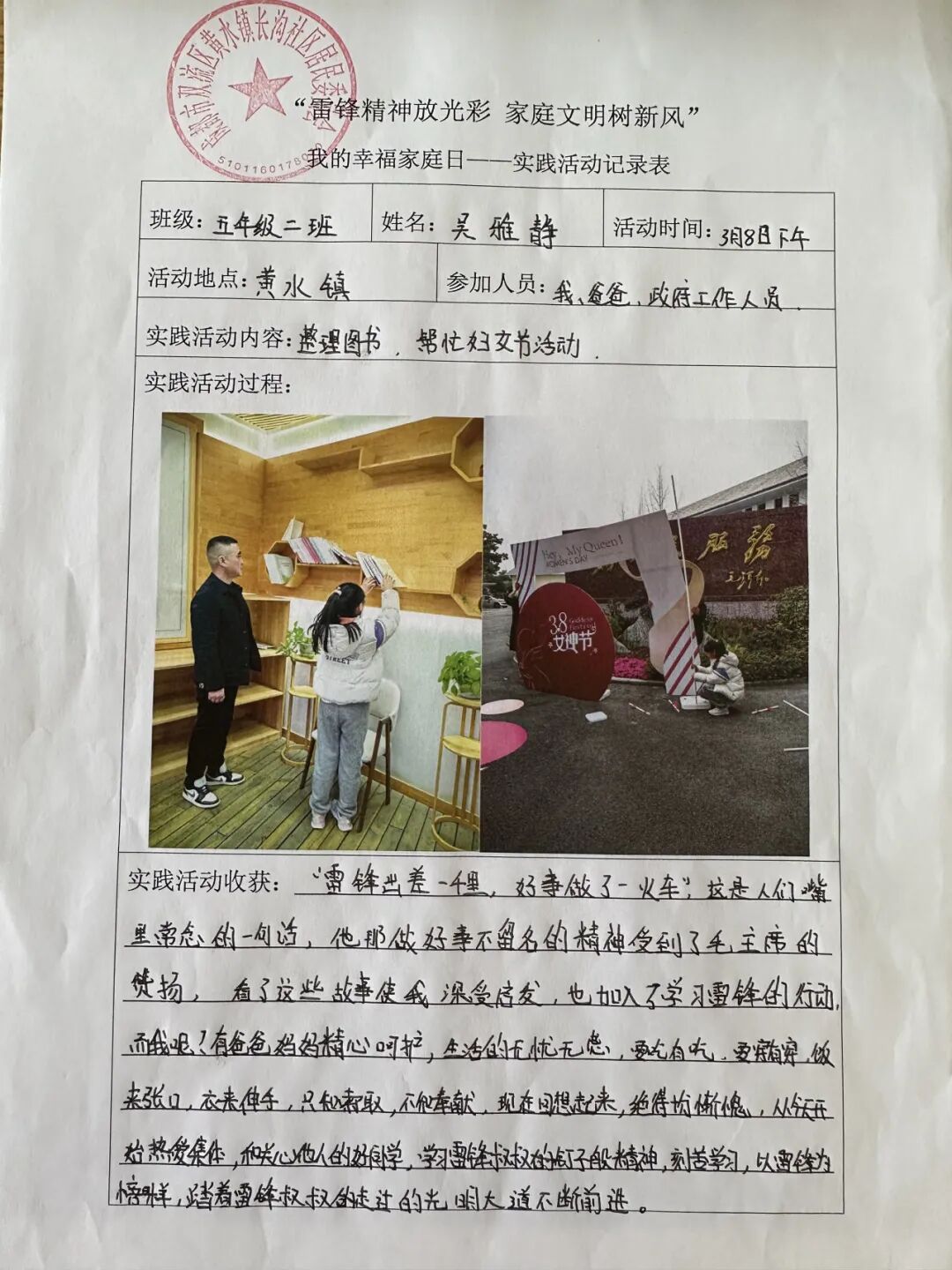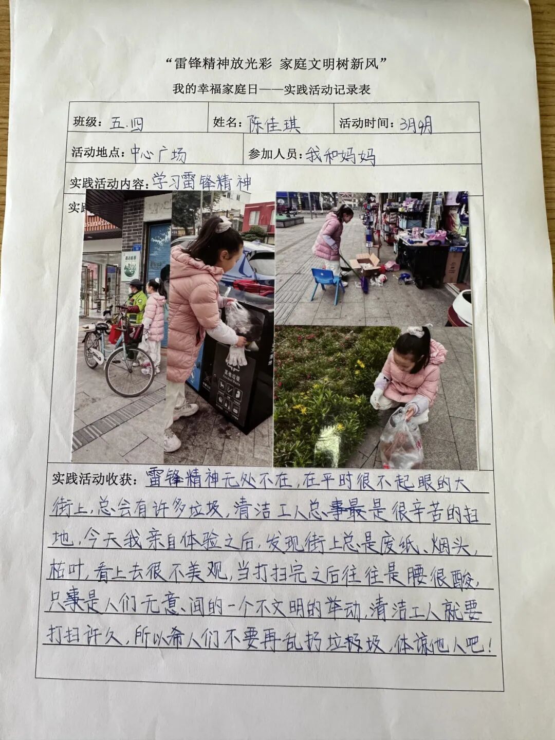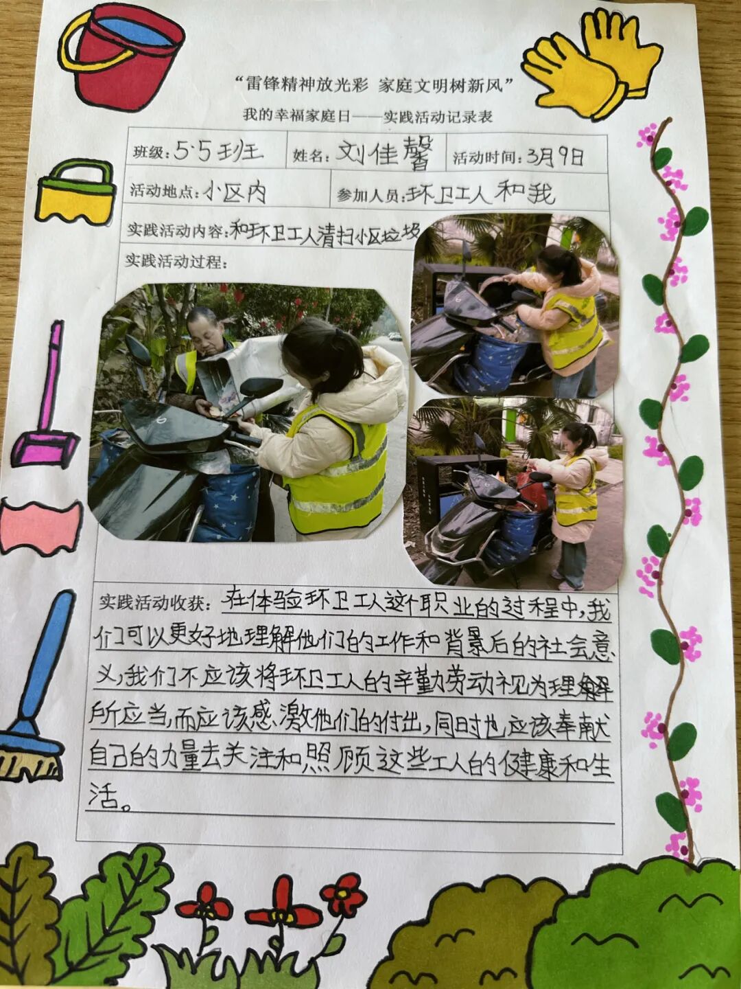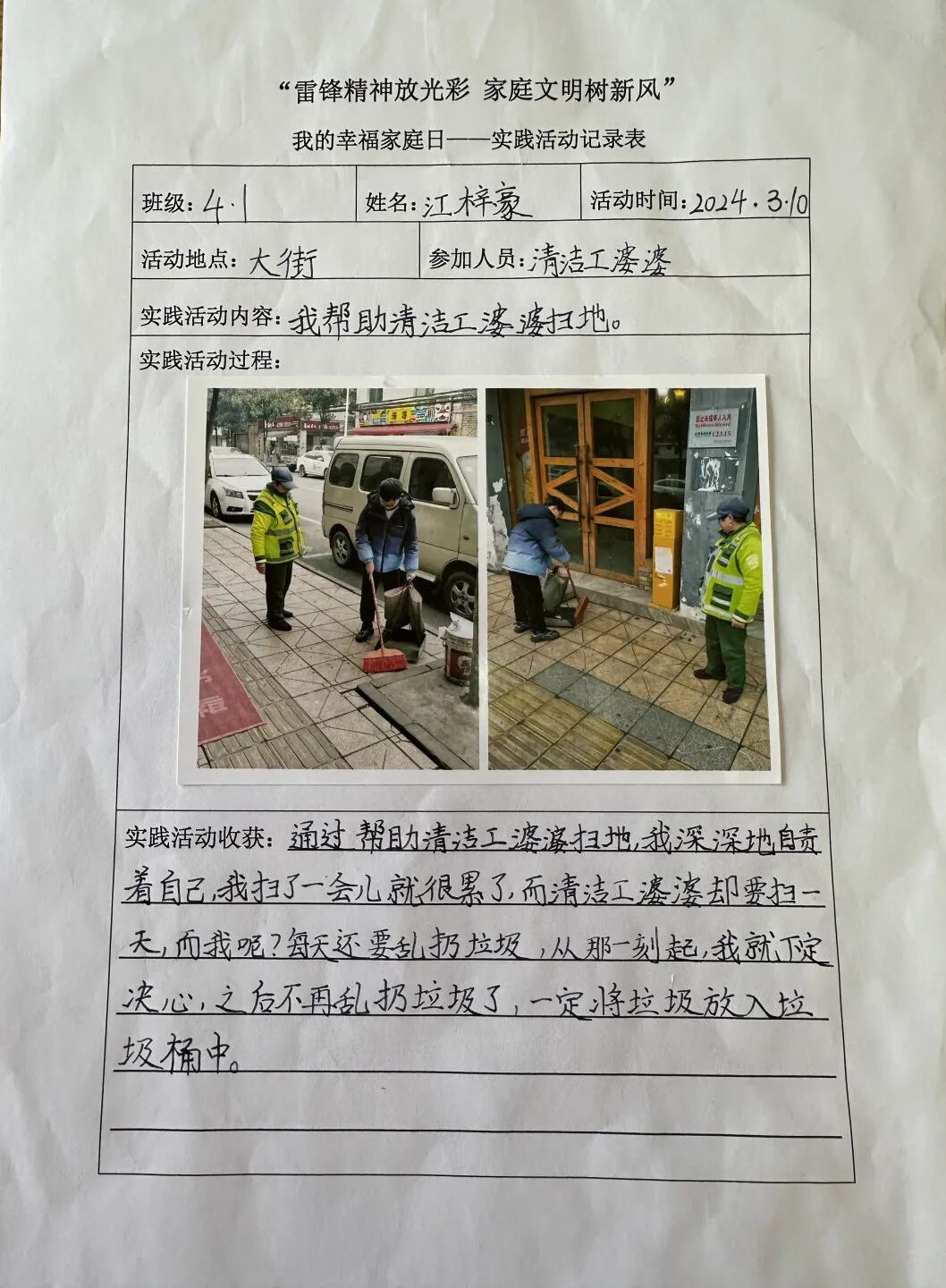 同学们利用周末时间,在家人的陪伴下,开展“雷锋精神放光彩 家庭文明树新风”家庭幸福日实践活动。