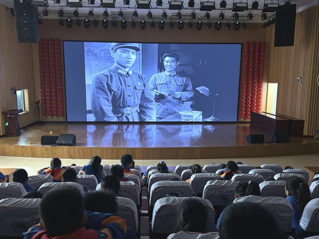 2024年3月15日,爱国主义教育电影活动走进了彭镇小学,三年级全体少先队员齐聚阶梯教室观看电影《雷锋》。