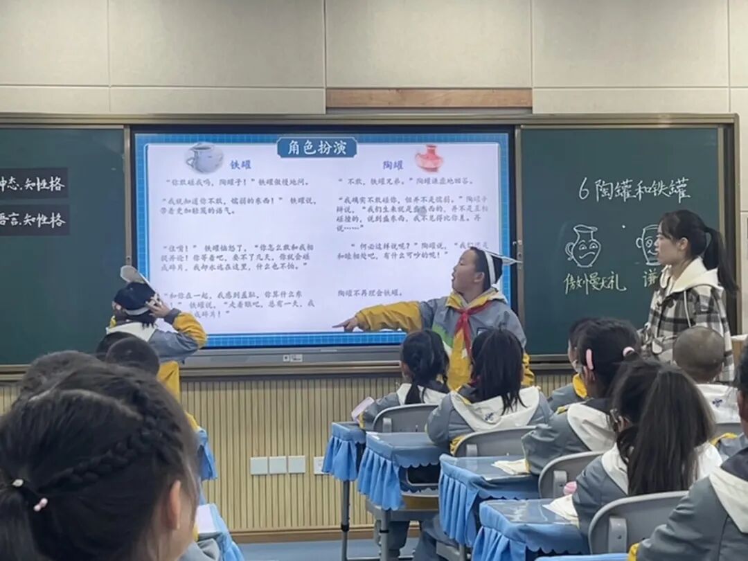 成老师的教学活动设计以学生为本,通过总结提炼有效的阅读策略如“抓形态,知性格”,“抓语言,解性格”和“联系生活,懂道理”等学习方法,引导学生捕捉关键信息,实现语文核心素养有效落地的最大化。通过入情入境地分角色朗读,学生们逐渐走进人物,感悟陶罐和铁罐不同的性格,逐渐理清了事情之间的逻辑关系,并能够及时联系生活,引导学生养成独立思考的能力。