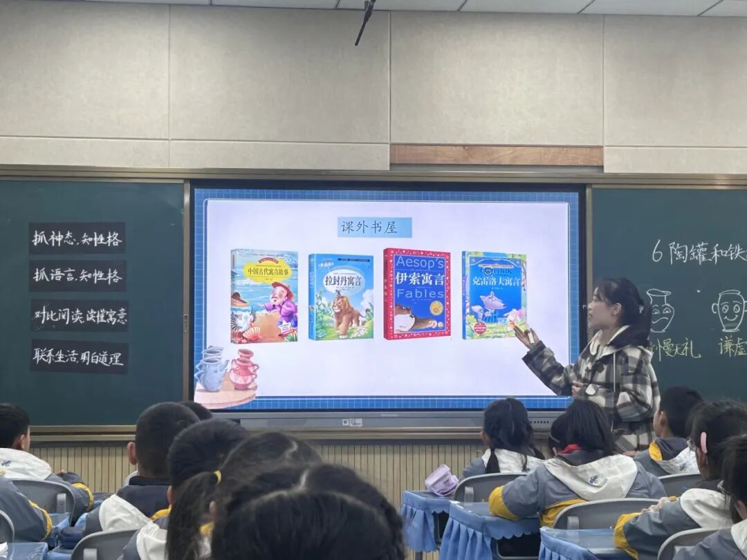 寓言闪烁着人类智慧的火花,又充满诗意的美。成老师本课由“小寓言,大故事”大单元主题引出,创设寓言学习的大情境,以陶罐和铁罐的对话为线索,结合对话中的提示语、特殊的称呼、标点符号来加深学生对课文人物性格的理解。