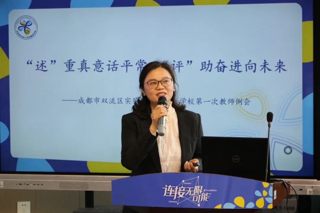 春光明媚,春色渐浓,杨柳青青,草长莺飞,田野林间缱绻着灵动的诗意,花丛氤氲着沁人的芬芳,处处春意萦绕,处处生机勃发。在这样美好的季节里,双流区实验小学外国语学校迎来了本学期第一次教师例会,本次例会主要有3个议程,首先是关于教学管理的述评制度培训,随后是双实外校级名师工作室授牌仪式,最后是周校长近期工作总结。