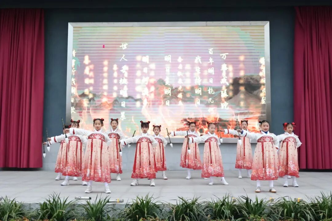 当我们还在感慨时光飞逝的同时,美好的春天已经来临,春姑娘在小主持们的呼唤中带着春风,迎着春雨向我们走来了。温煦的春色熨帖大地,清爽的春雨催开了百花,鲜艳欲滴,我们怎能不珍惜如此美好的大好春光呢?当《时间都去哪儿了》朗诵声在耳边响起时,我们便陷入该如何面对时光飞逝沉思里,舞蹈《明日歌》又将我们拉回到现实中,那催人奋进的旋律,招引着我们吹响春的短笛,珍惜时光,继续徜徉知识的海洋。明日复明日,明日何其多,我们要学会珍惜时间,珍惜美好时光,做更多有意义的事。长路漫漫,我们摩拳擦掌。