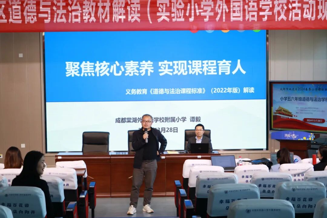3月28日,成都棠湖外国语学校附属小学道德与法治团队以“聚焦核心素养,实现课程育人”为主题,围绕五、六年级教材内容进行剖析与解读,为兄弟学校的老师们带来了一场精彩的分享。