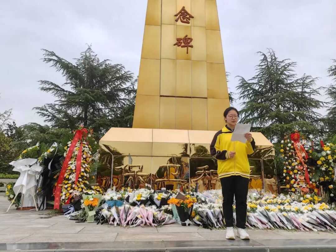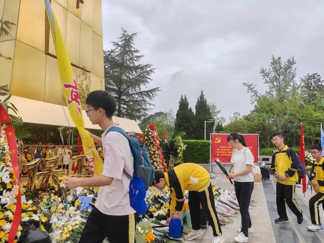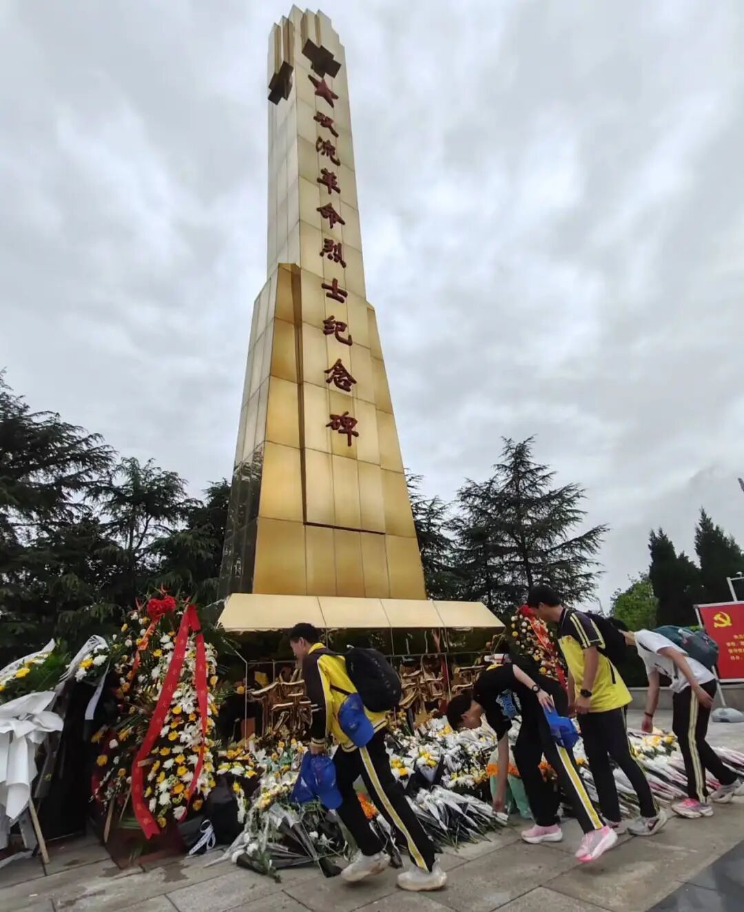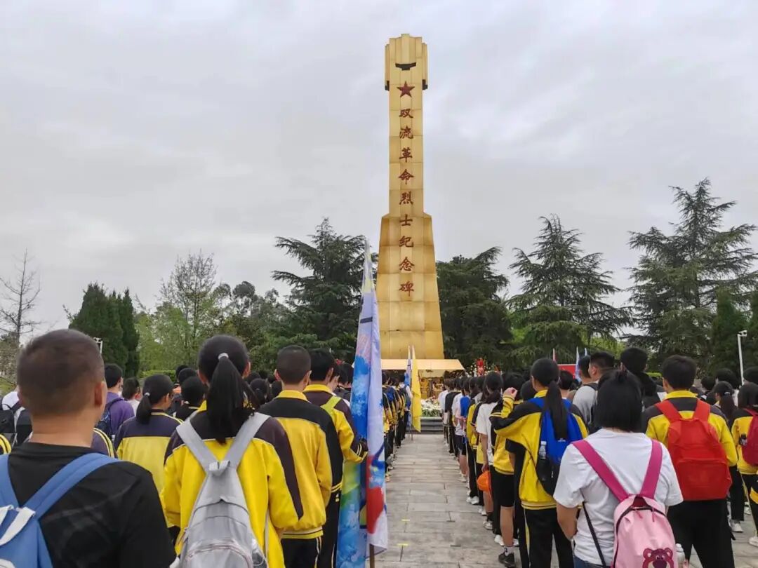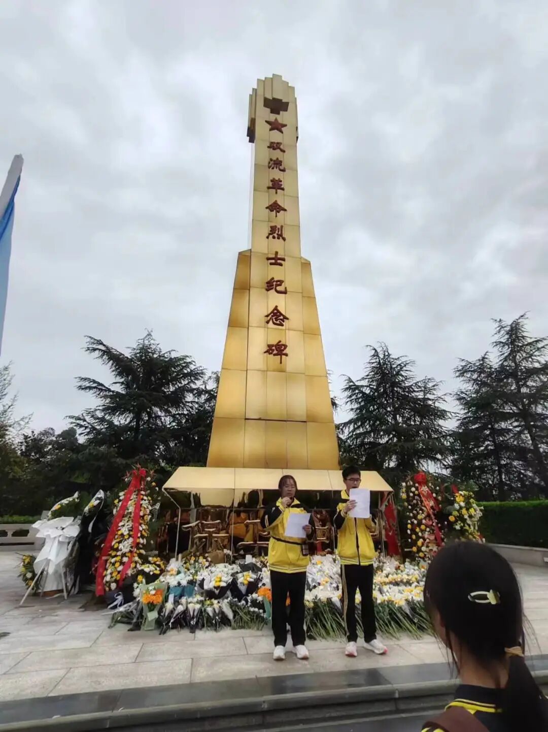 下午一点半,队伍到达双流烈士陵园,师生手捧鲜花,神情庄严肃穆,怀着对革命先辈的崇高敬意,整齐地排列在纪念碑前祭英烈。