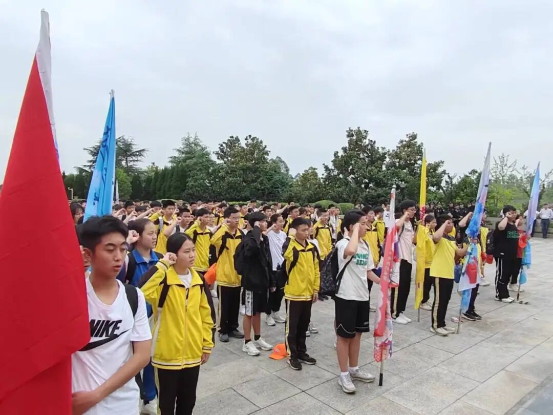上午十点半,九年级全体师生蓄势待发、斗志昂扬,在校旗、团旗、班旗的引领下启程。前往烈士陵园的路程遥远,同学们身体疲惫却还迈着有力的步伐前进,不惧辛苦,听从指挥,队列整齐,井然有序,坚持完成徒步。同学之间互相帮助、互相鼓励,深刻地体会到了团结协作的力量。