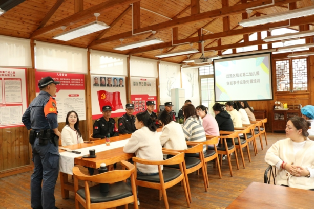 分局巡警大队走进成都市双流区机关第二幼儿园开展校园突发事件应急处置培训。活动现场,民警紧紧围绕反恐演练、刀斧砍杀、应急疏散等科目,组织专题处置培训。同时,还组织小朋友们参观了警用装备,与警犬进行互动展示。通过此次活动,进一步增强了学生安全防范意识,提升了校园教职工应对突发事件的处置能力。