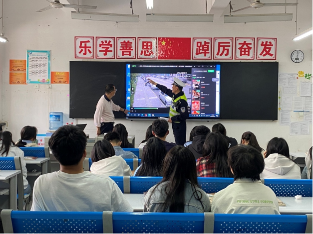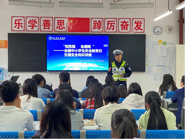 围绕“知危险 会避险”交通安全主题,成都交警十二分局走进四川旅游学校,课堂上,民警结合典型案例和学生们出行习惯,从步行安全、骑行安全、乘车安全等方面入手,用浅显易懂的语言、幽默风趣的形式向同学们讲解了交通安全知识,引导同学们从细节做起,树立文明交通安全意识,增强知险避险防范能力,当好自身安全“第一责任人”,并带动家属共同争做文明交通的宣传者、实践者和引导者。