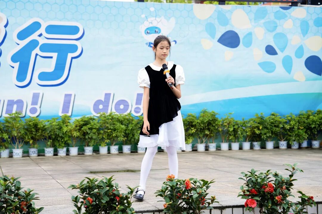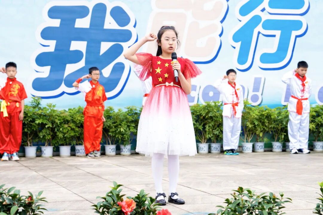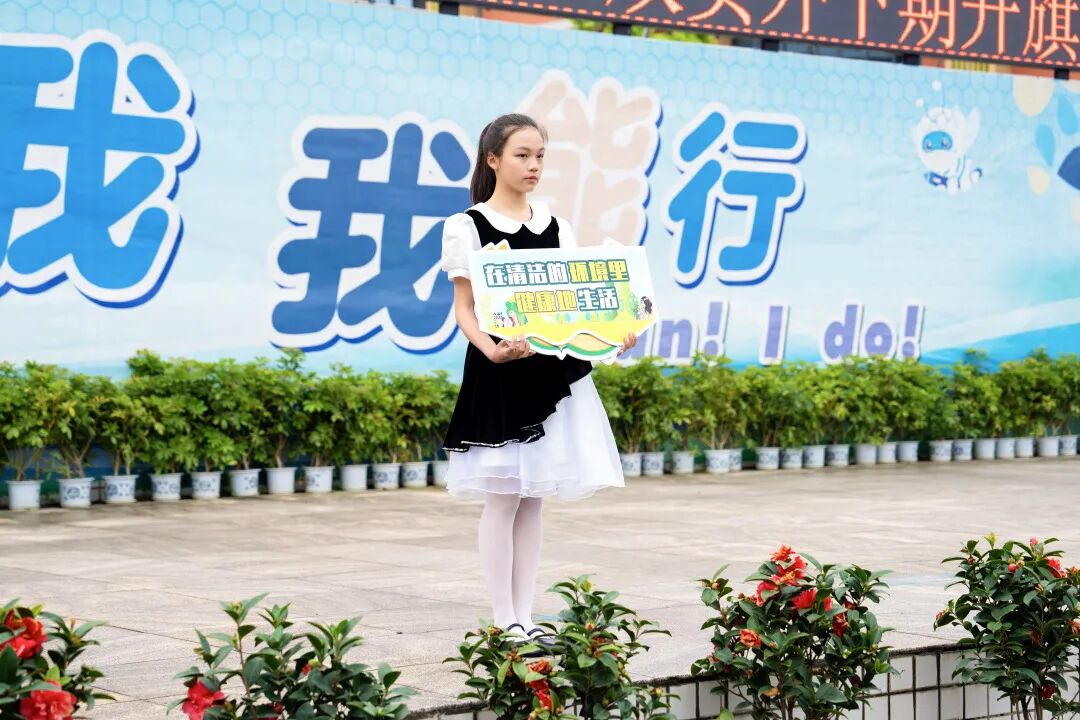 首先,阳光自信的胡歆雅同学进行国旗下讲话,她向全校同学发出倡议:作为新时代的未来主人,我们在享受福利的同时也肩负着时代责任和担当,不仅要踏踏实实学习过硬的知识本领,耕耘前人先辈们为我们留下的知识热土,还要与时俱进,关心环境和自然,关注热点时事,坚持自己的理想和追求。从自身出发,做好自己,保持良好的生活习惯,养成良好的卫生习惯。从小事做起,关注身边的人和事,共创美好的生活环境,做当代文明学生。