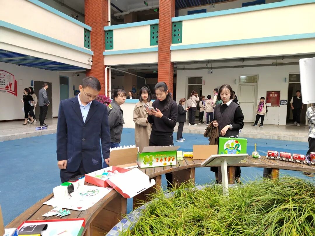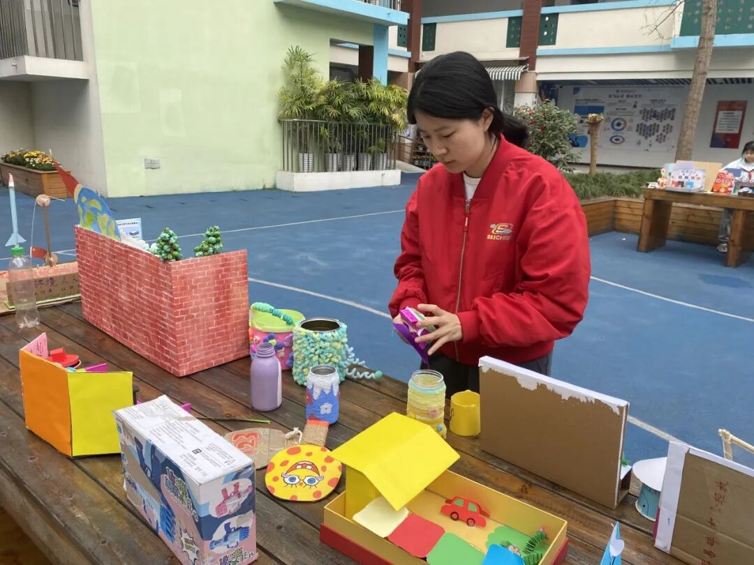 这就是同学们制作的环保艺术品展示区,吸引了众多参观者,展示了他们对环保主题的深刻理解和创意表达。
