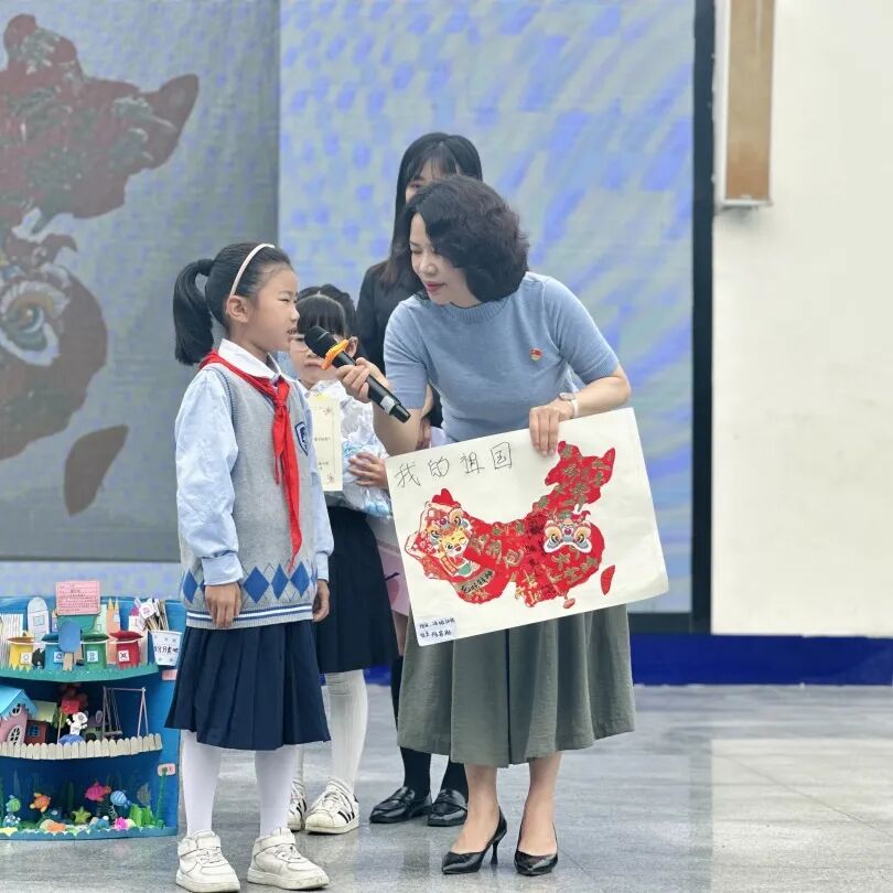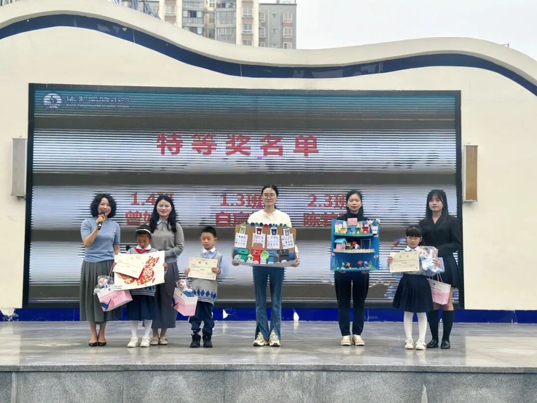 此次活动还设立了3个特等奖,在升旗仪式时,夏校长亲自为特等奖的孩子颁奖,邀请了获奖同学的家长和孩子一起谈作品创作的灵感和思路。