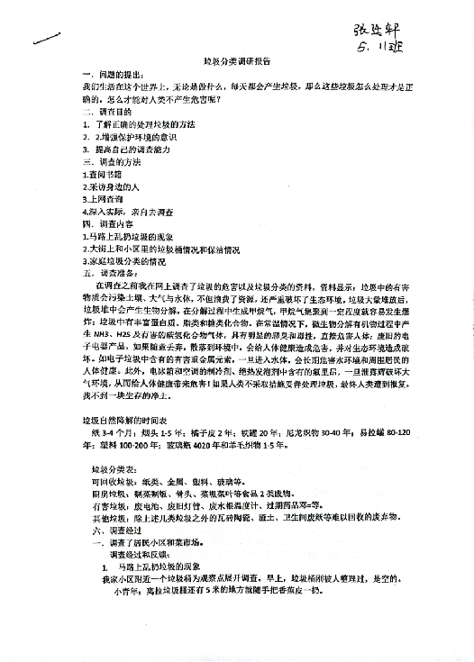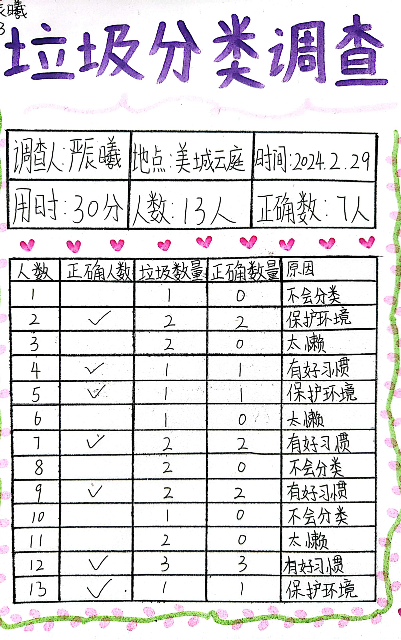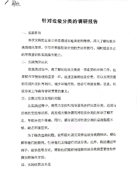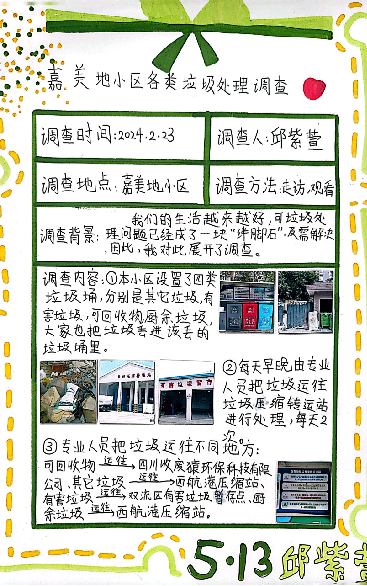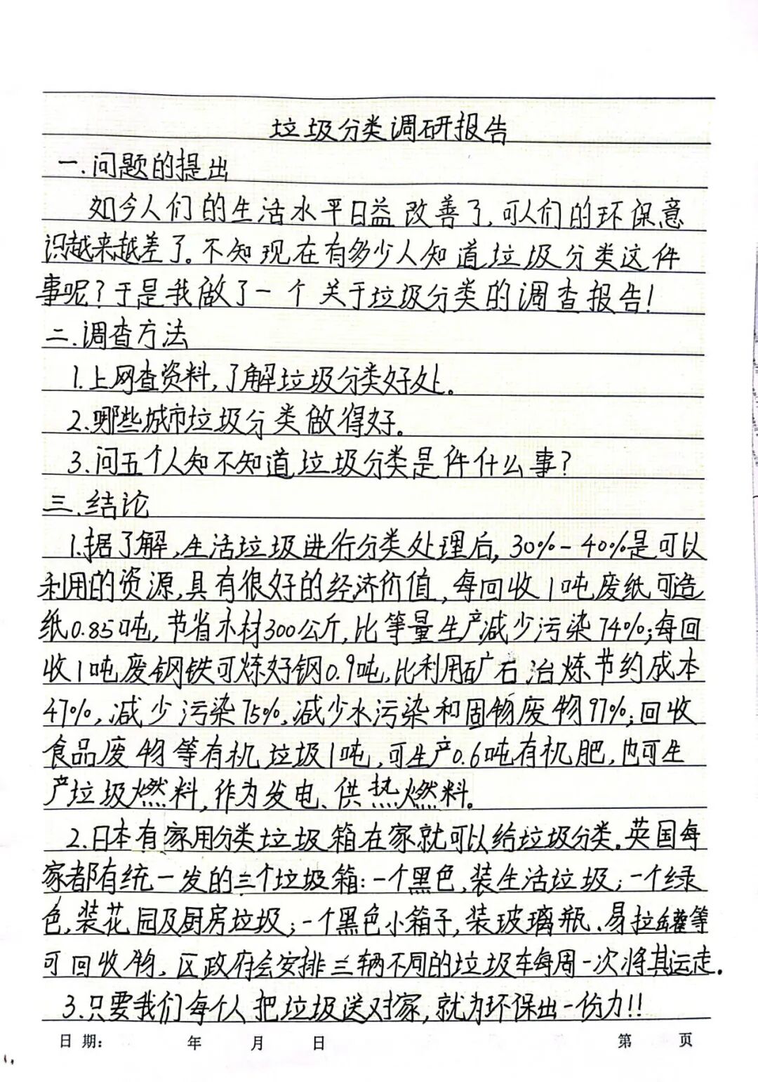 小朋友和爸爸妈妈在小区、社区、街道走一走,看一看,针对垃圾分类情况,形成一份调研报告。