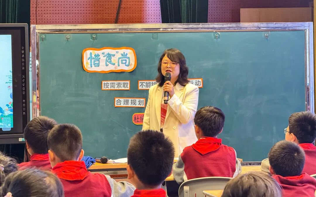 我校班主任学科带头人高雪莲老师给大家带来了一堂以《惜食尚 行节俭》为课题的微班会课。