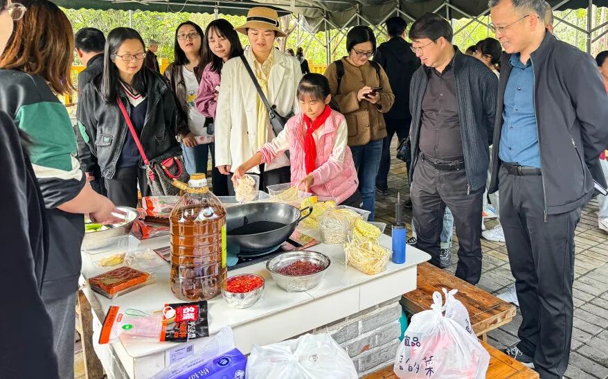 党支部书记、校长夏伶俐向大家介绍了我校办学特色,课程建设、四航教师发展、品格教育、家校社协同育人等方面的具体做法,特别是对当前如何建设家校社协同育人机制,整合学校资源,创新工作思路所取得的成效进行了详细的介绍。结合品格教育,建设“家校社协同育人基地”,打造集“寻迹—实践—延伸”三位一体的研学基地。家校社体验基地的建设实施,带给了老师们别具一格的品格教育体验,老师们参与到火锅野炊活动中,和孩子们一起感受西小的温暖和热情,深切地感受行走在品格教育路上的美好。