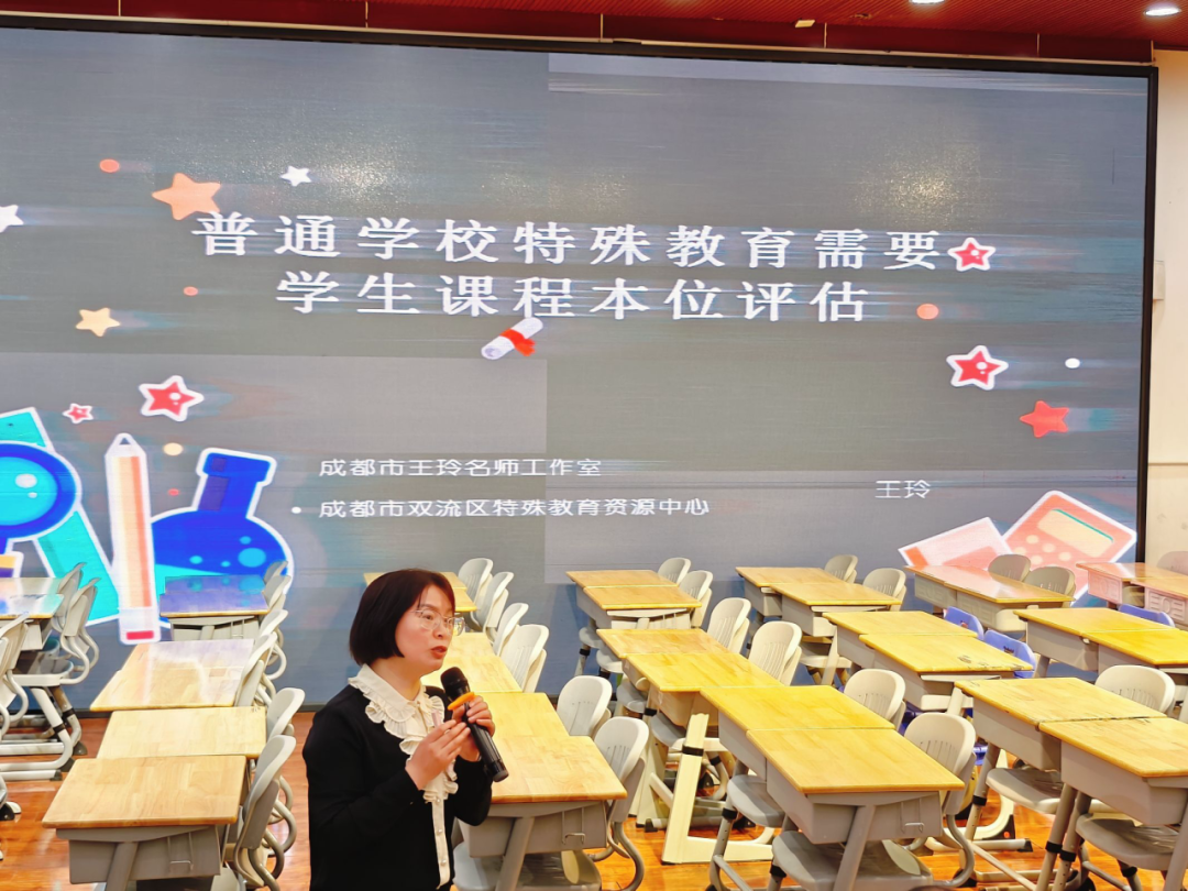 活动伊始,成都市王玲名师工作室成员,双流区特殊教育资源中心巡回支持教师蔡倩就听障随读生语文学科能力实操评估进行主题分享。