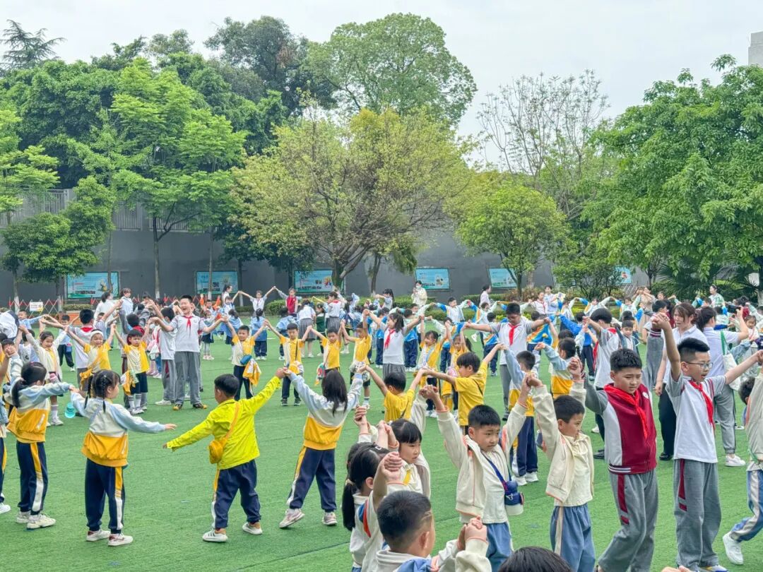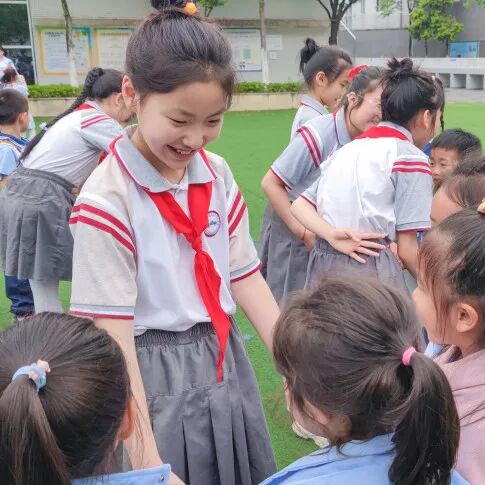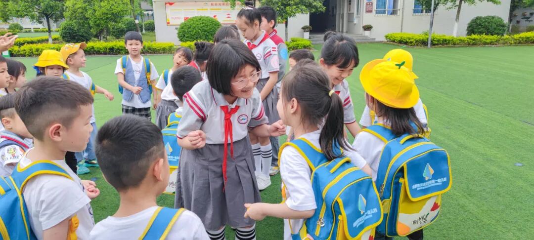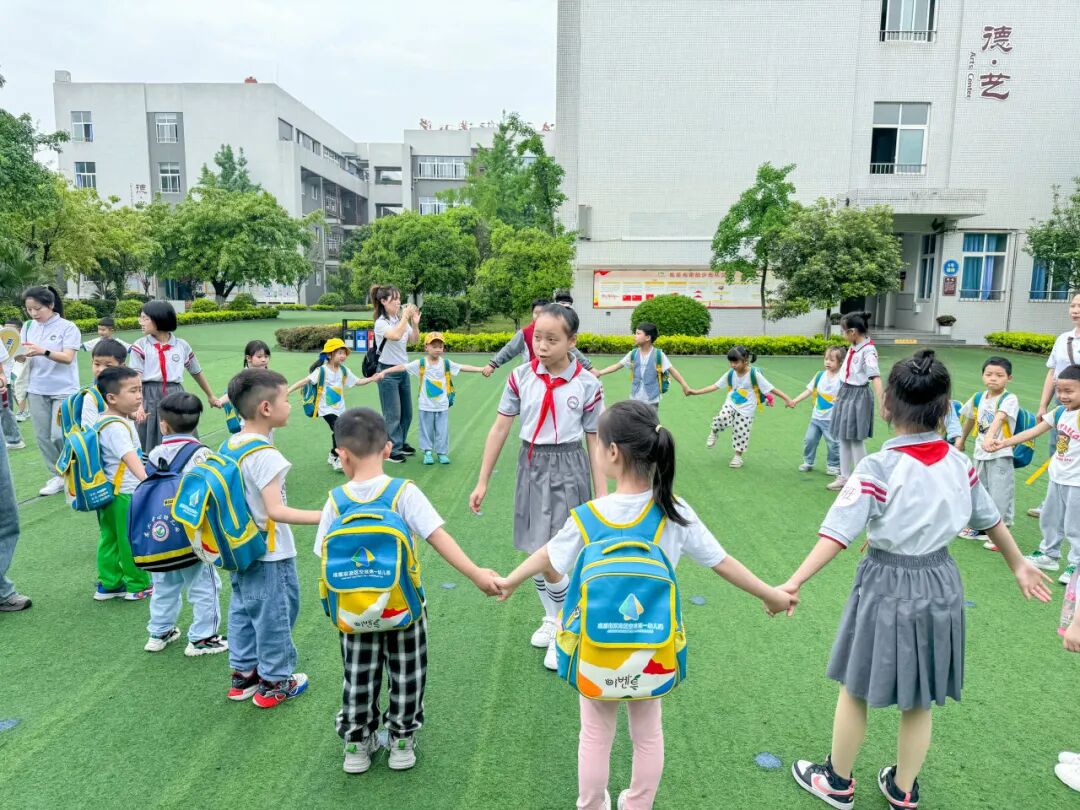 除了课堂体验,还有各种有趣的互动环节,在西航港小学心理工作室李思静老师的带领下,小朋友通过游戏结识了新朋友,他们手牵手、肩并肩,在操场上留下了欢乐的笑声。