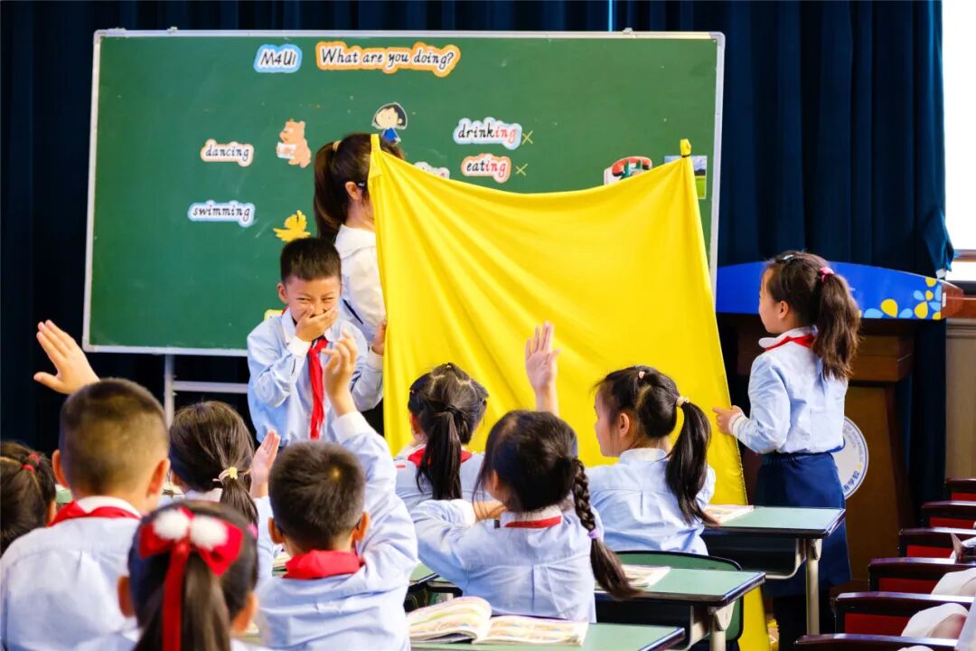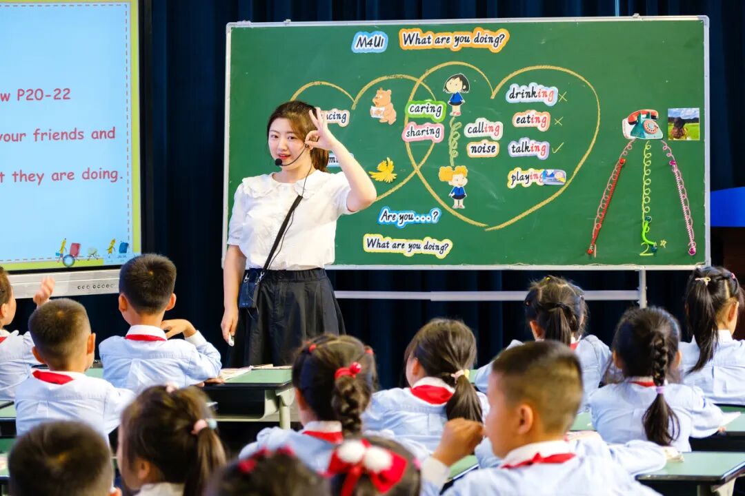 我校英语教师郭梦笛和二年级6班的孩子们共同展示了《M4U1 What are you doing?》。郭老师地道的发音,纯正的口语,活泼自然的教态为孩子们营造了轻松愉悦的课堂氛围。郭老师的课堂引入真实生活的场景,设计了丰富有趣的游戏活动,让学习在自然中发生,在活动中培养了孩子们解决实际问题的能力。