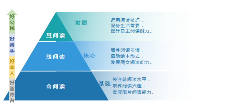 按照学生“会阅读”“绘阅读”“慧阅读”三层级阅读发展水平,遵循螺旋式上升原则,科学地编排生活阅读内容。