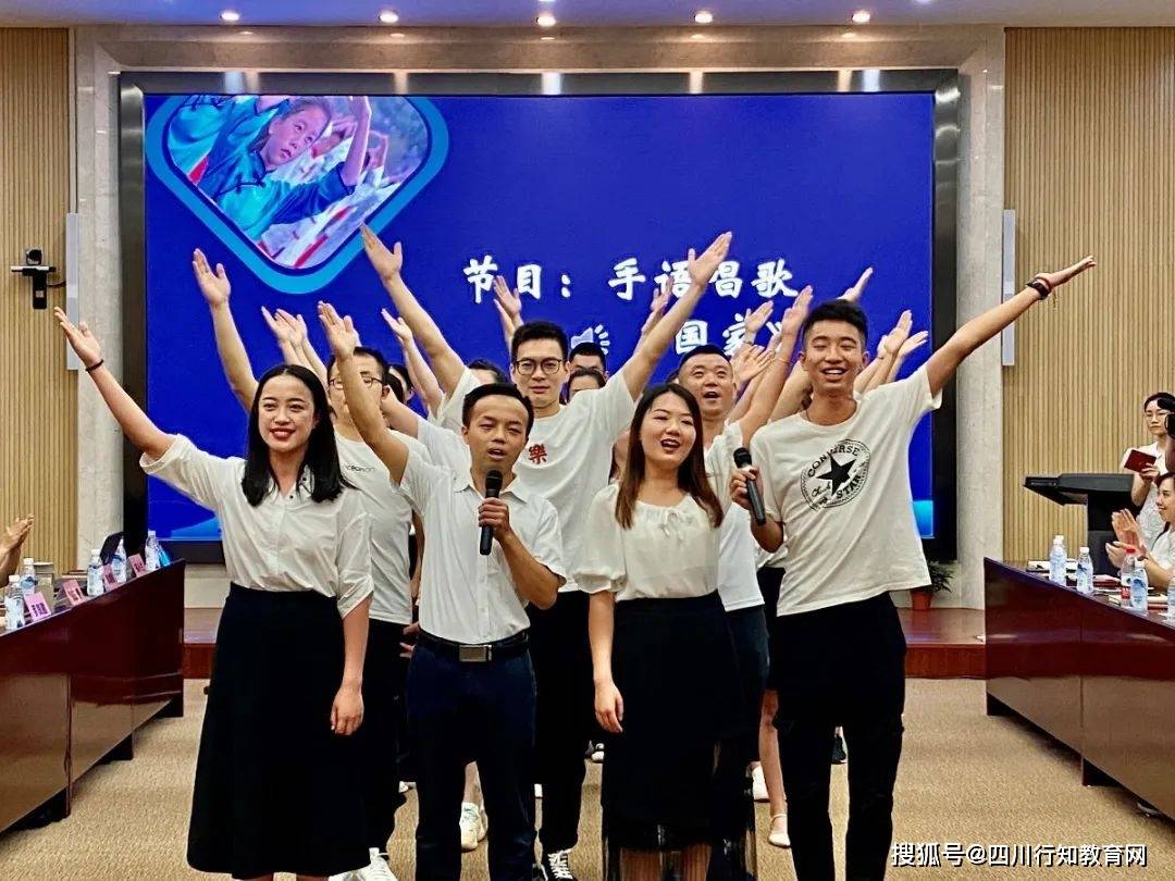 “国是我的国,家是我的家,我我的家……”美妙动听的歌声从华阳中学学术厅第二会议室传出来。新青教师代表正在表演手语舞节目:《国家》。第三届新岗、青岗教师情景式研训活动首日研训拉开序幕。此次培训为期六天,分线上、线下融合进行,共500多名新岗、青岗教师参训。