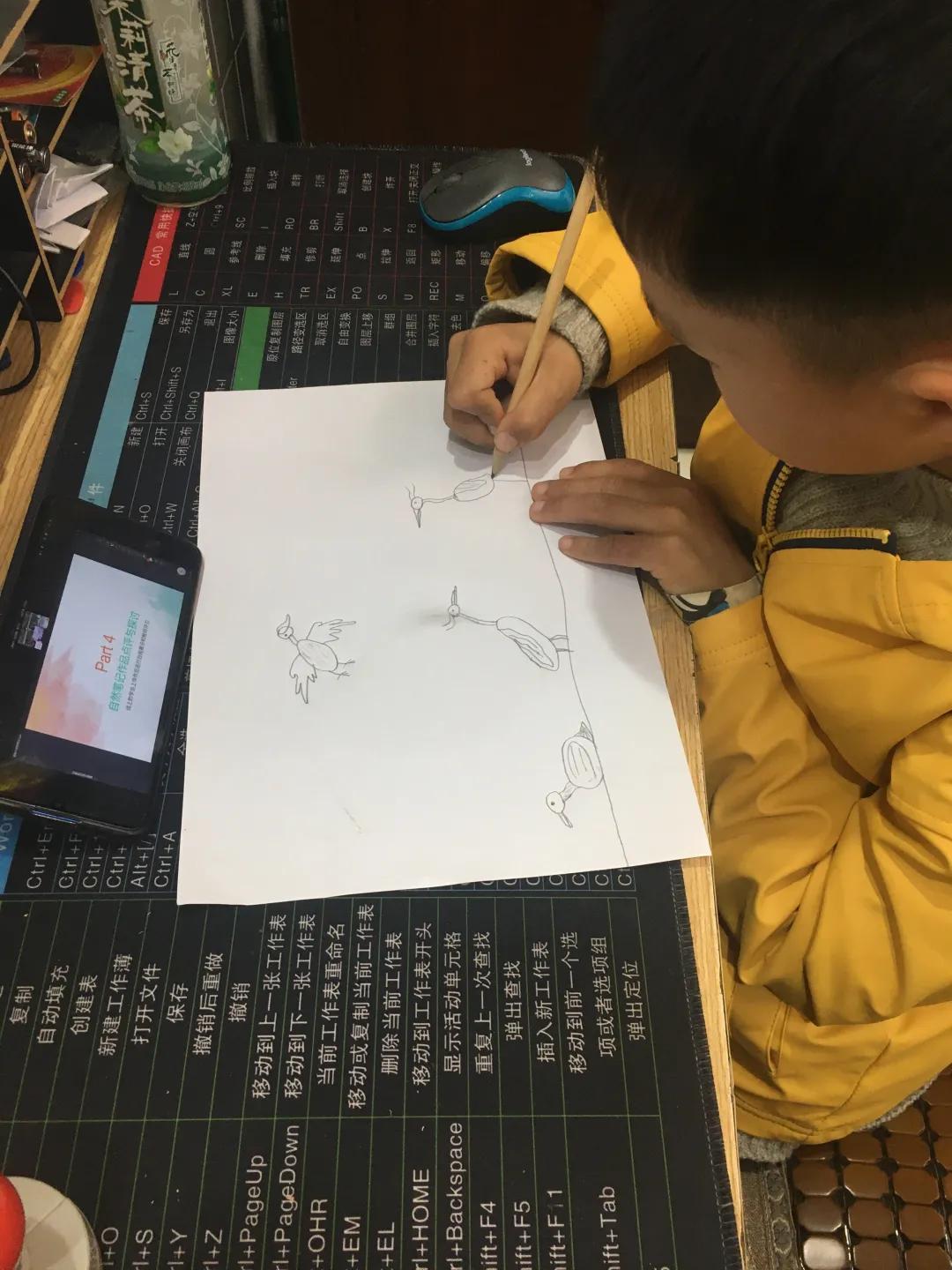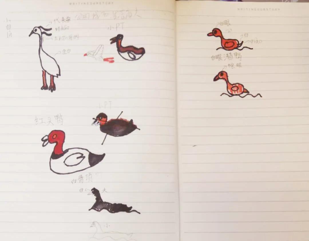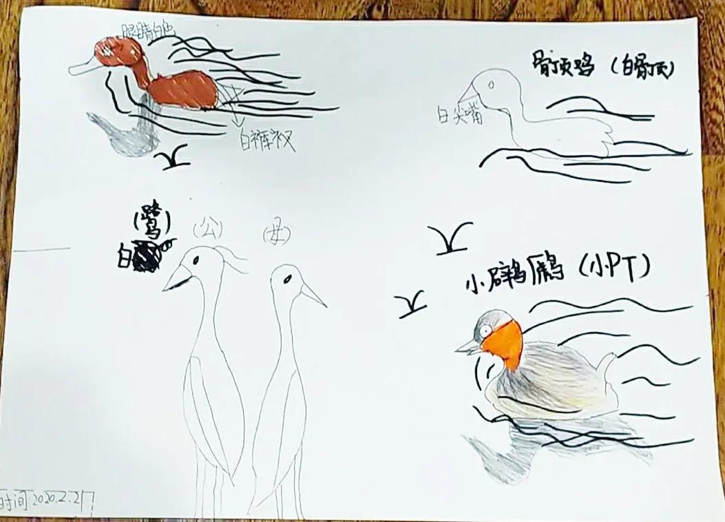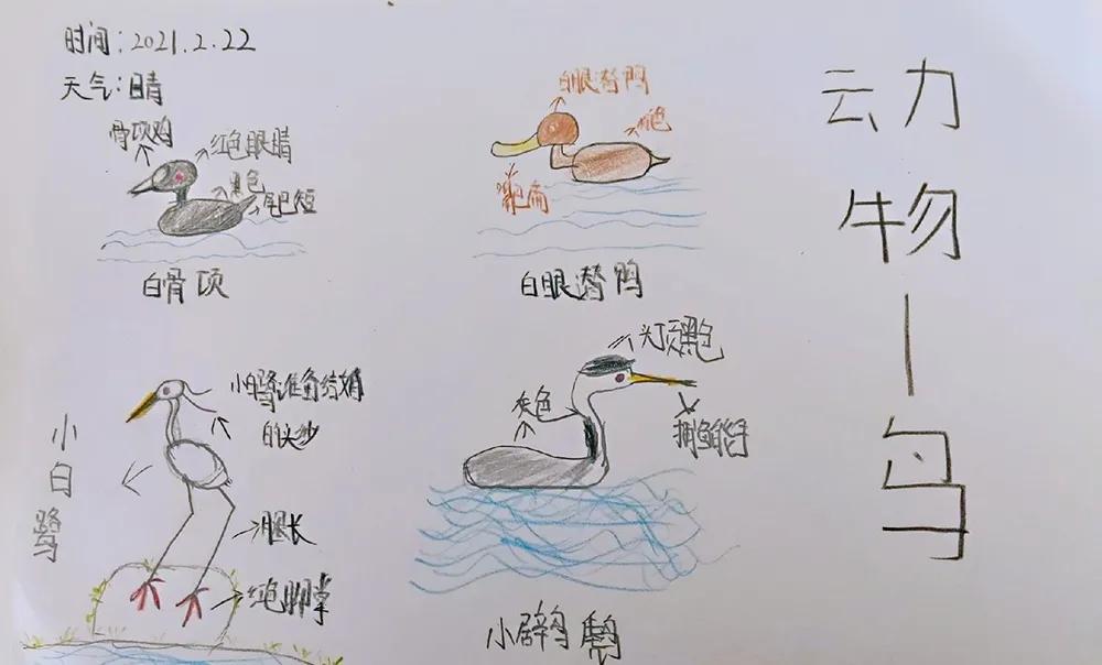 同学们运用学到的方式将水鸟记录下来。
